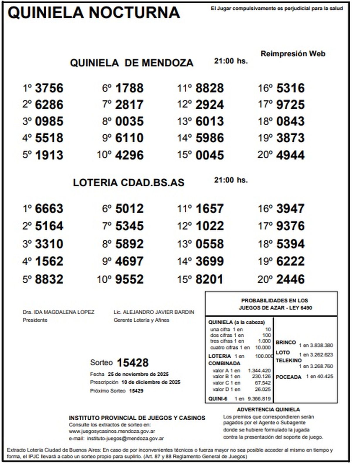 Quiniela de Mendoza: resultados de la Nocturna de hoy, 25 de noviembre de 2025