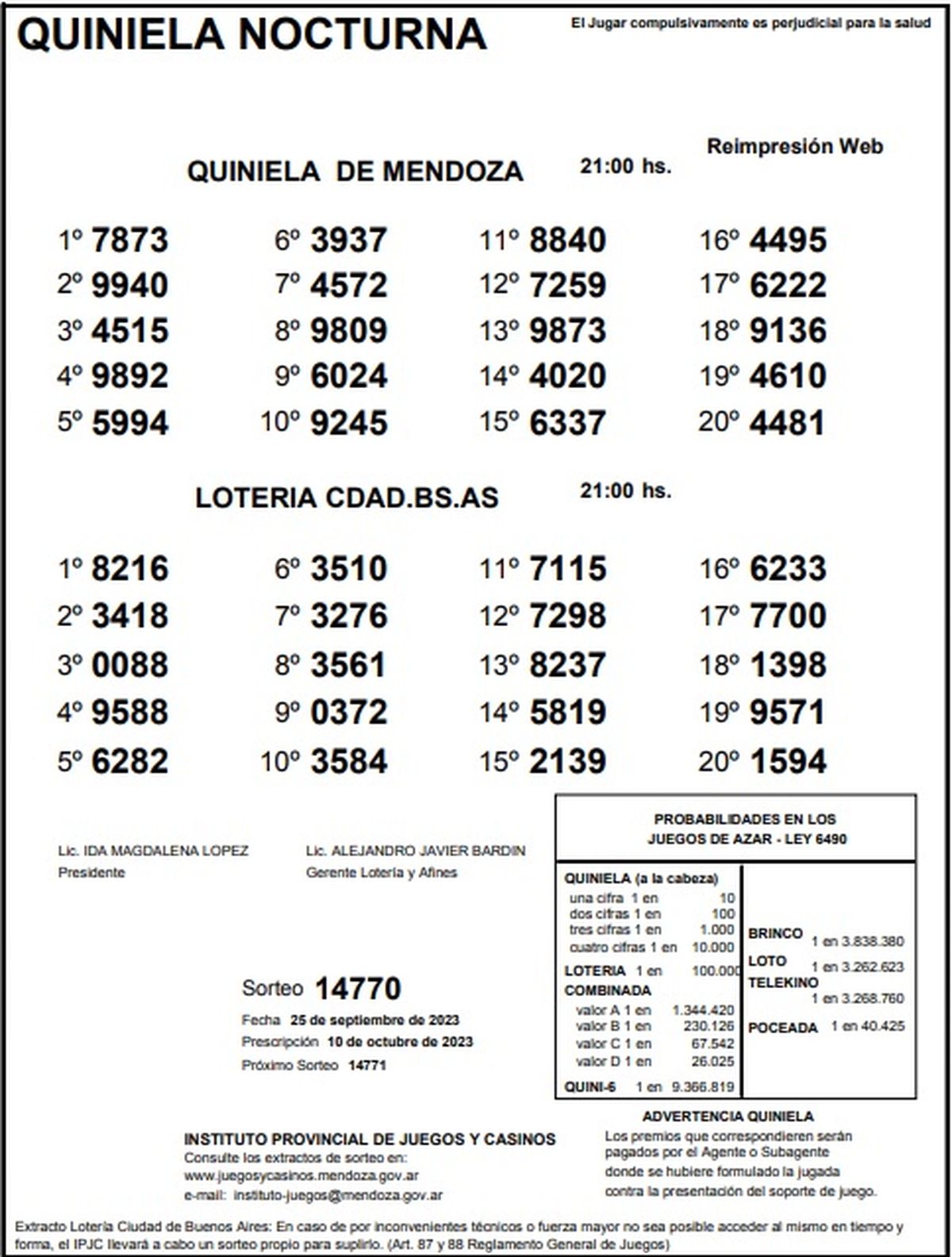 Quiniela de Mendoza: resultados de la Nocturna de hoy, 25 de setiembre