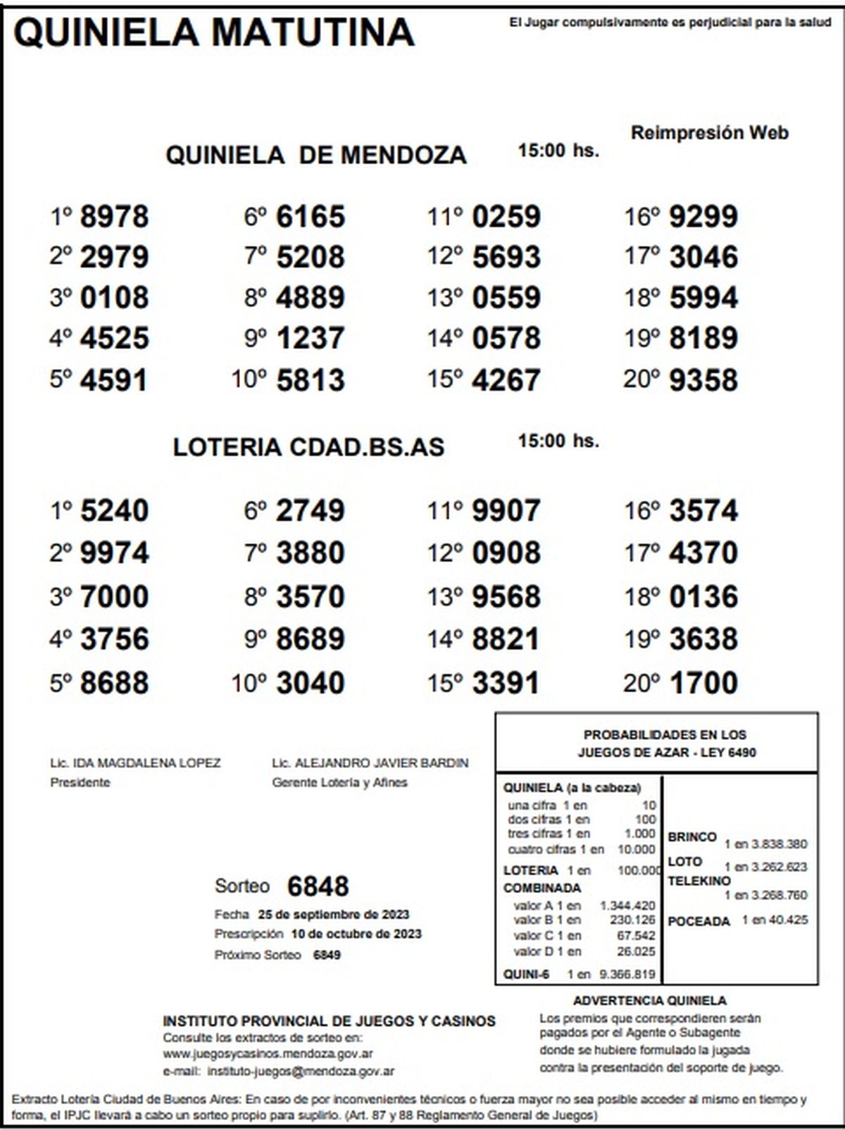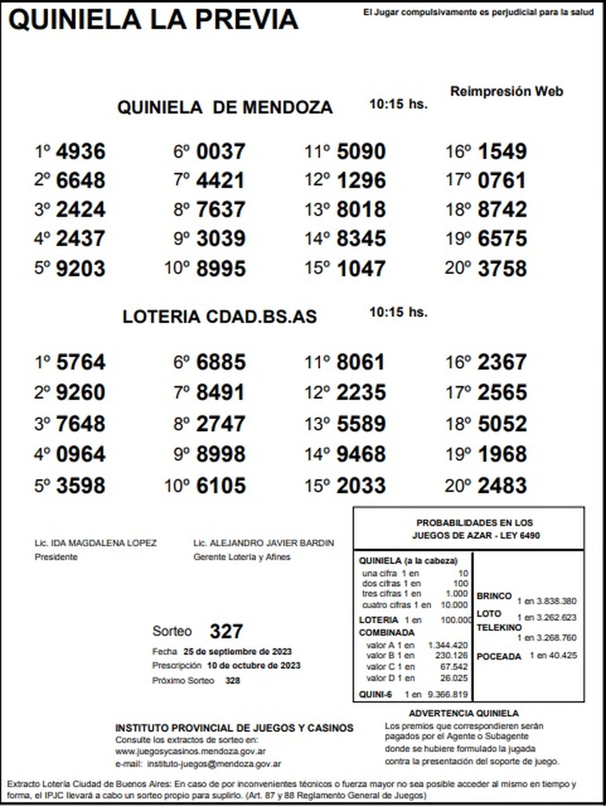 Quiniela de Mendoza: resultados de la Previa de hoy, 25 de setiembre