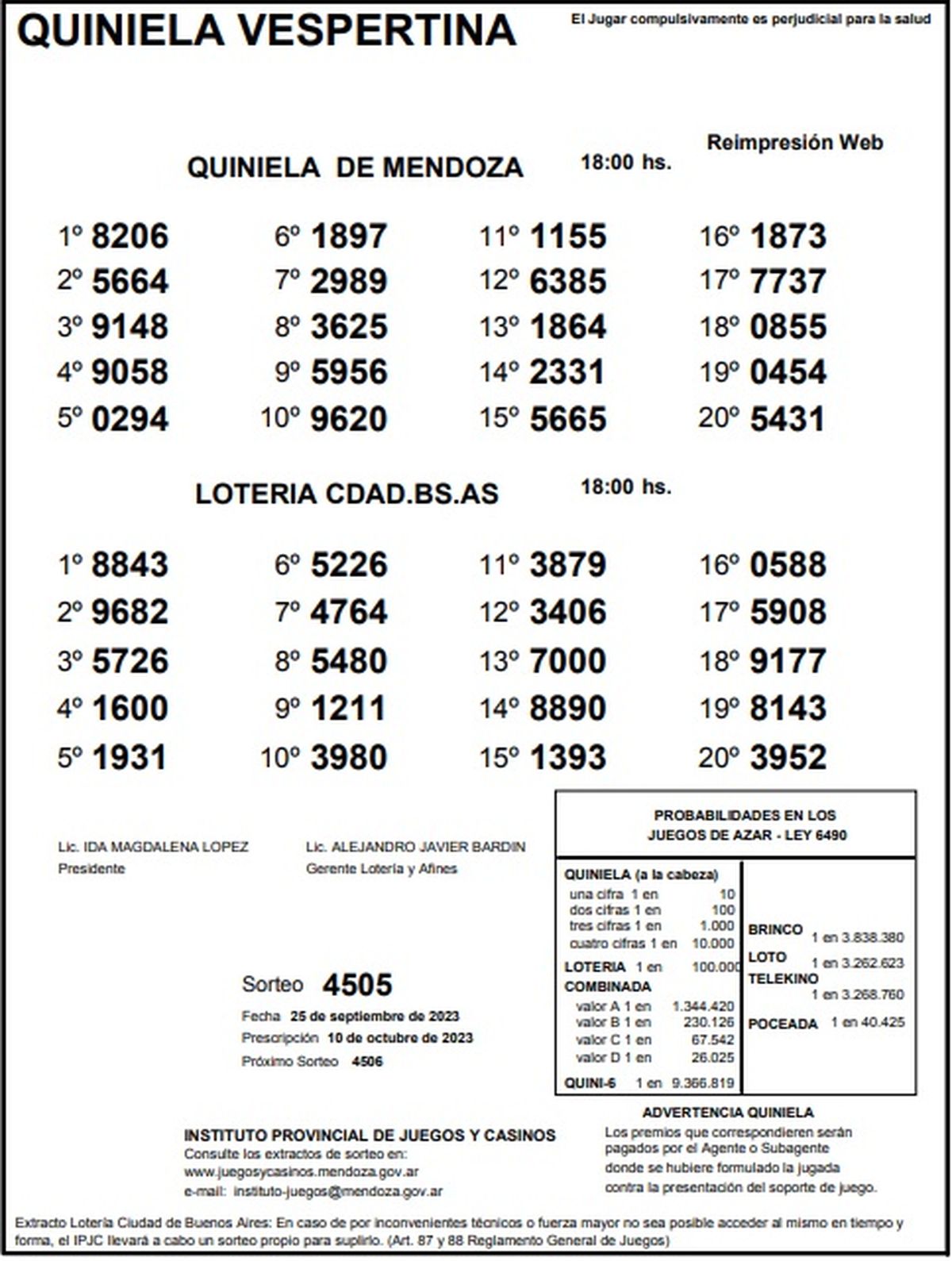 Quiniela de Mendoza: resultados de la Vespertina de hoy, 25 de setiembre
