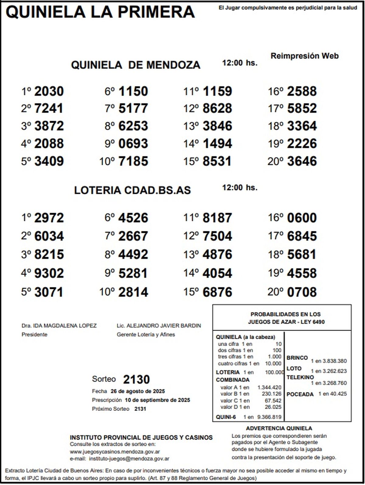 Resultados Quiniela de Mendoza: La Primera del 26 de agosto de 2025