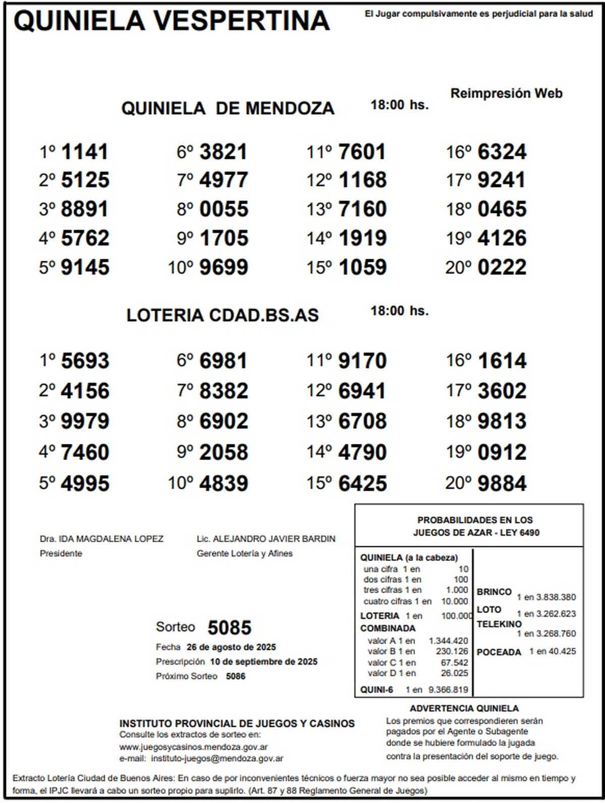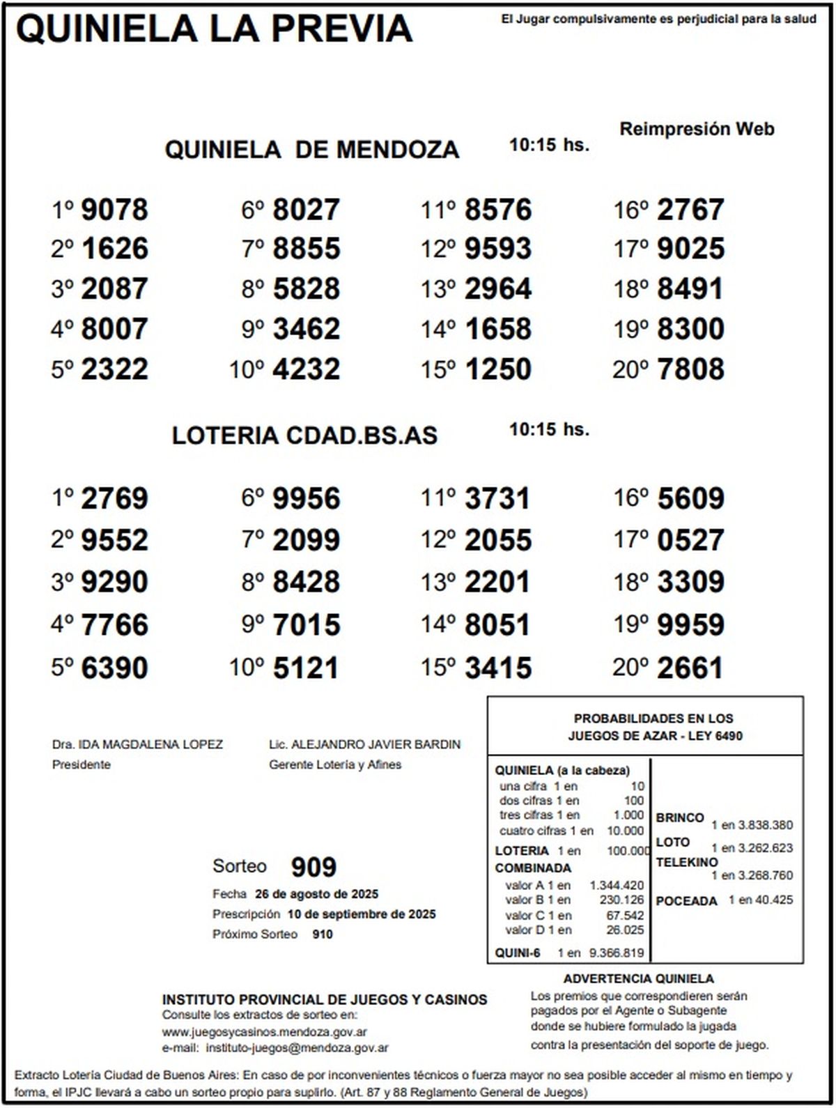 Resultados Quiniela de Mendoza: La Previa del 26 de agosto de 2025