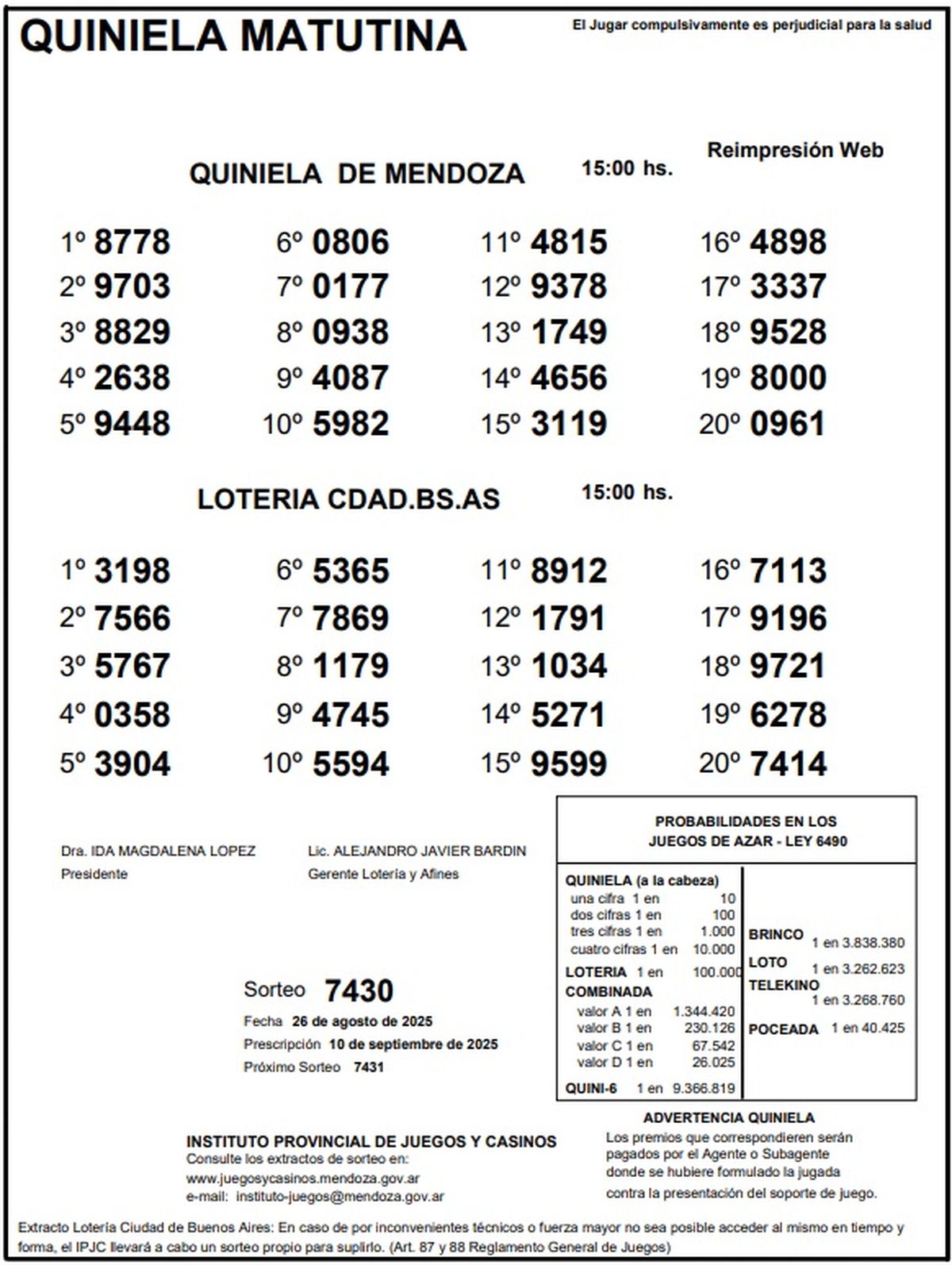 Resultados Quiniela de Mendoza: La Matutina del 26 de agosto de 2025