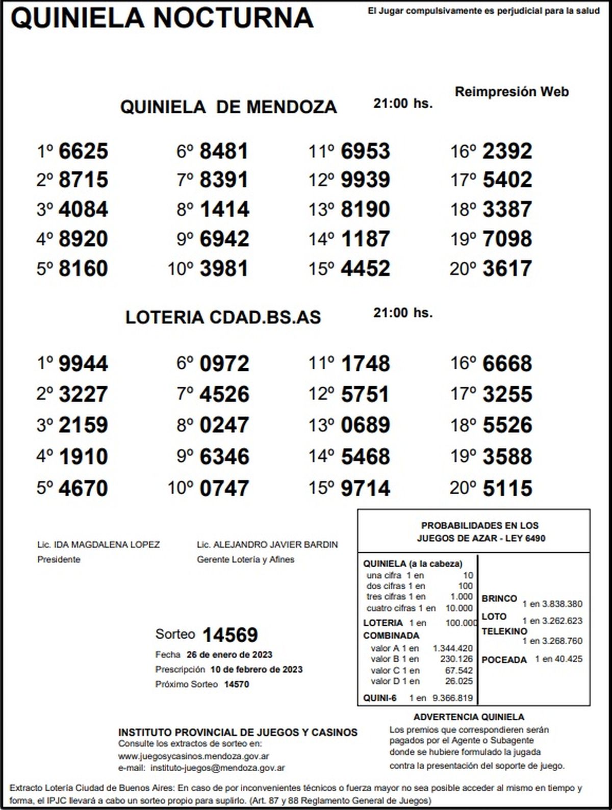 Quiniela de Mendoza: resultados de la Nocturna de hoy, 26 de enero de 2023