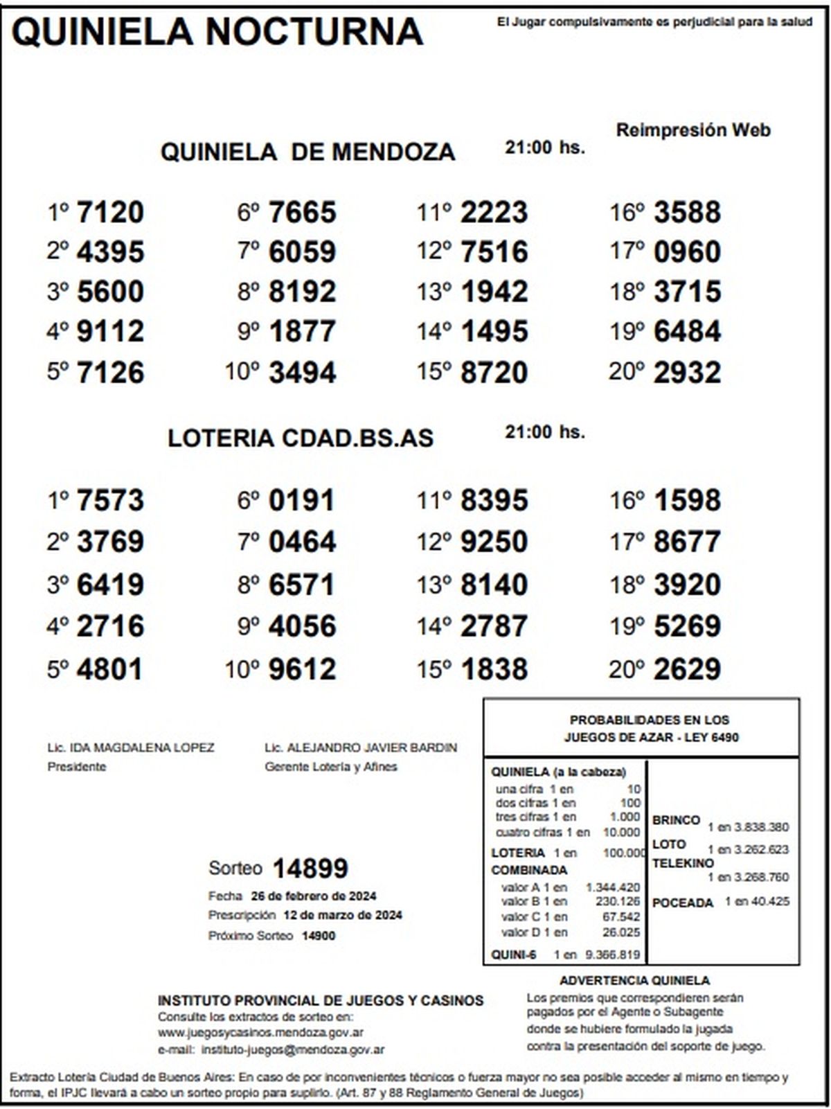 Quiniela de Mendoza: resultados de la Nocturna de hoy, 26 de febrero