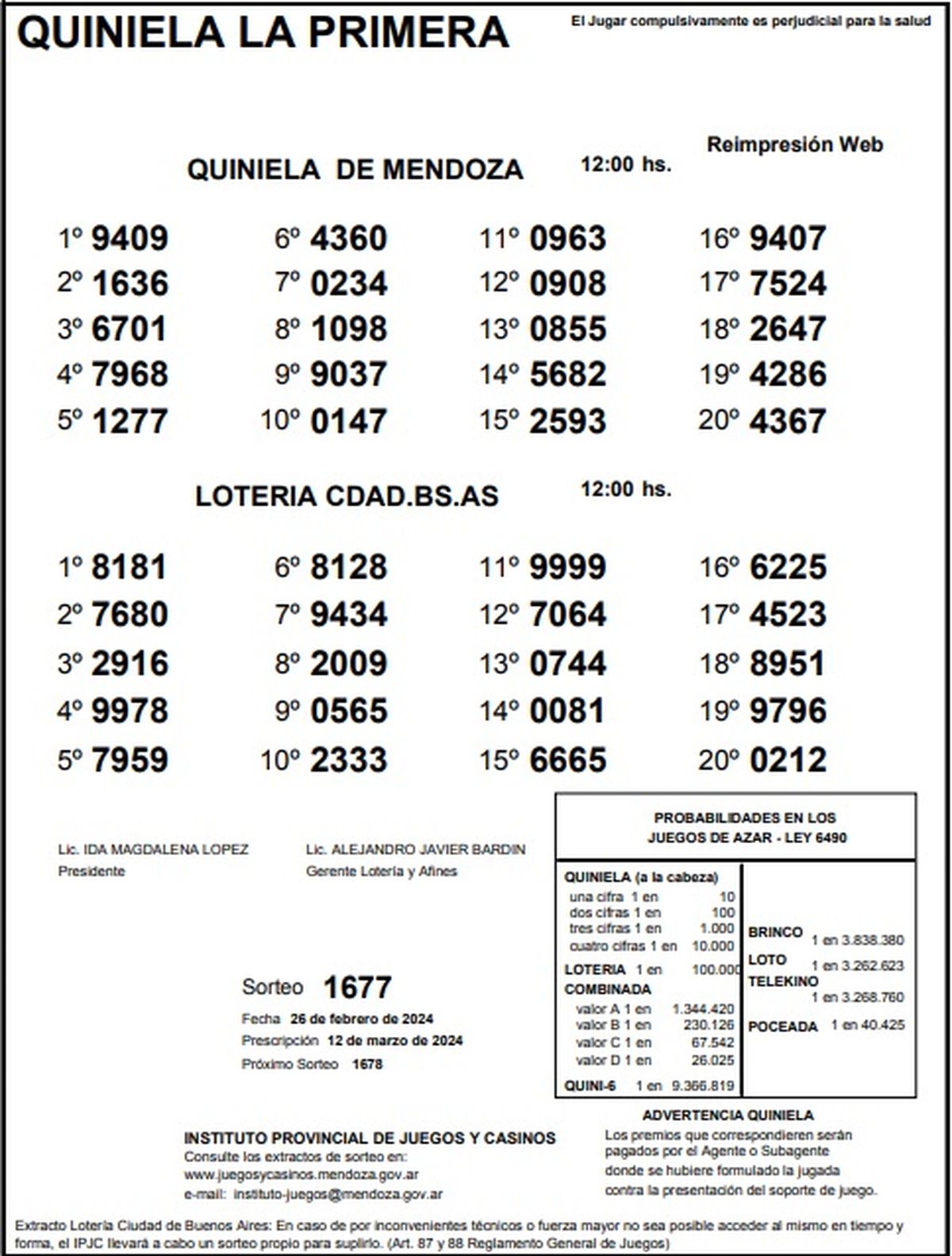 Resultados Quiniela de Mendoza: La Primera del 26 de febrero 2024