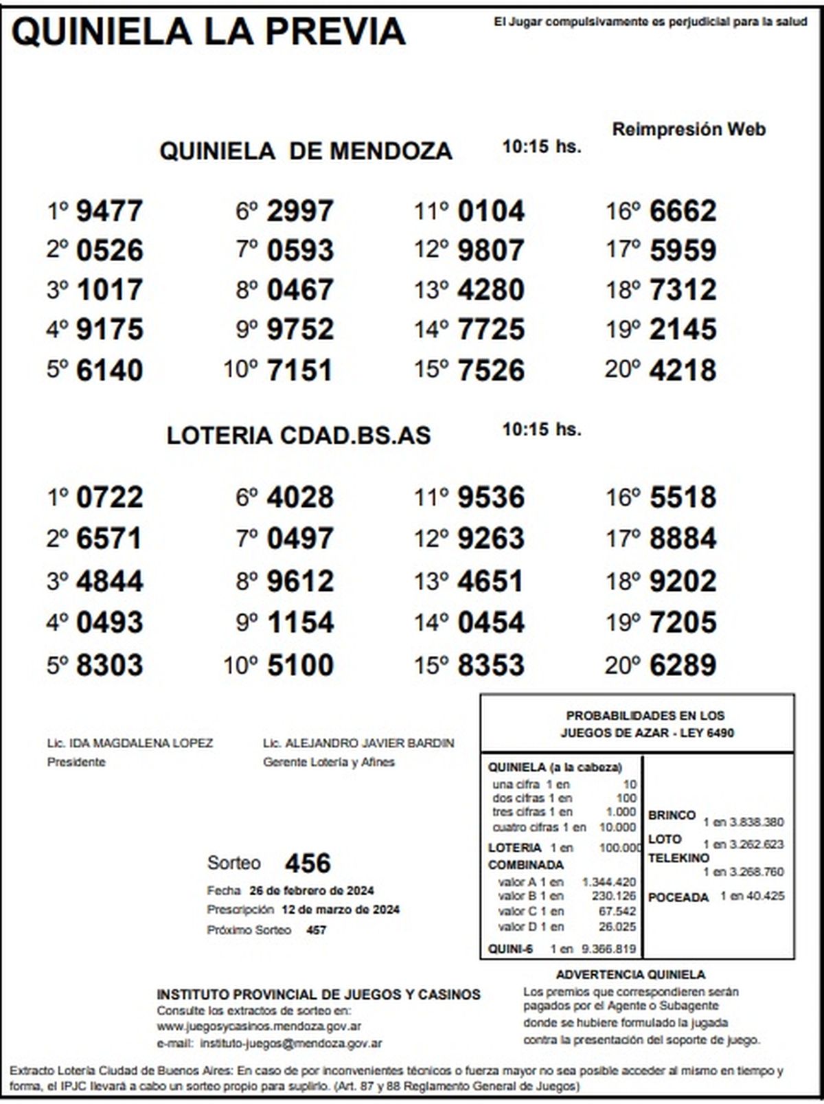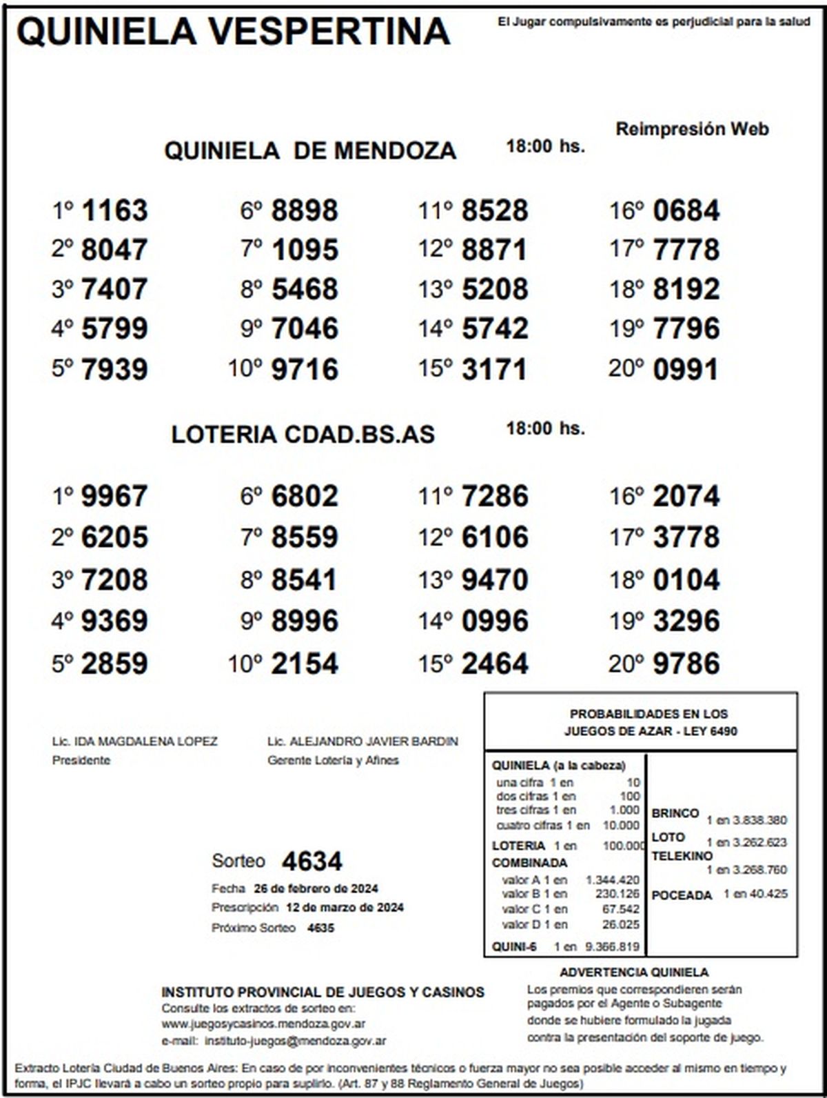 Resultados Quiniela de Mendoza: La Previa del 26 de febrero 2024