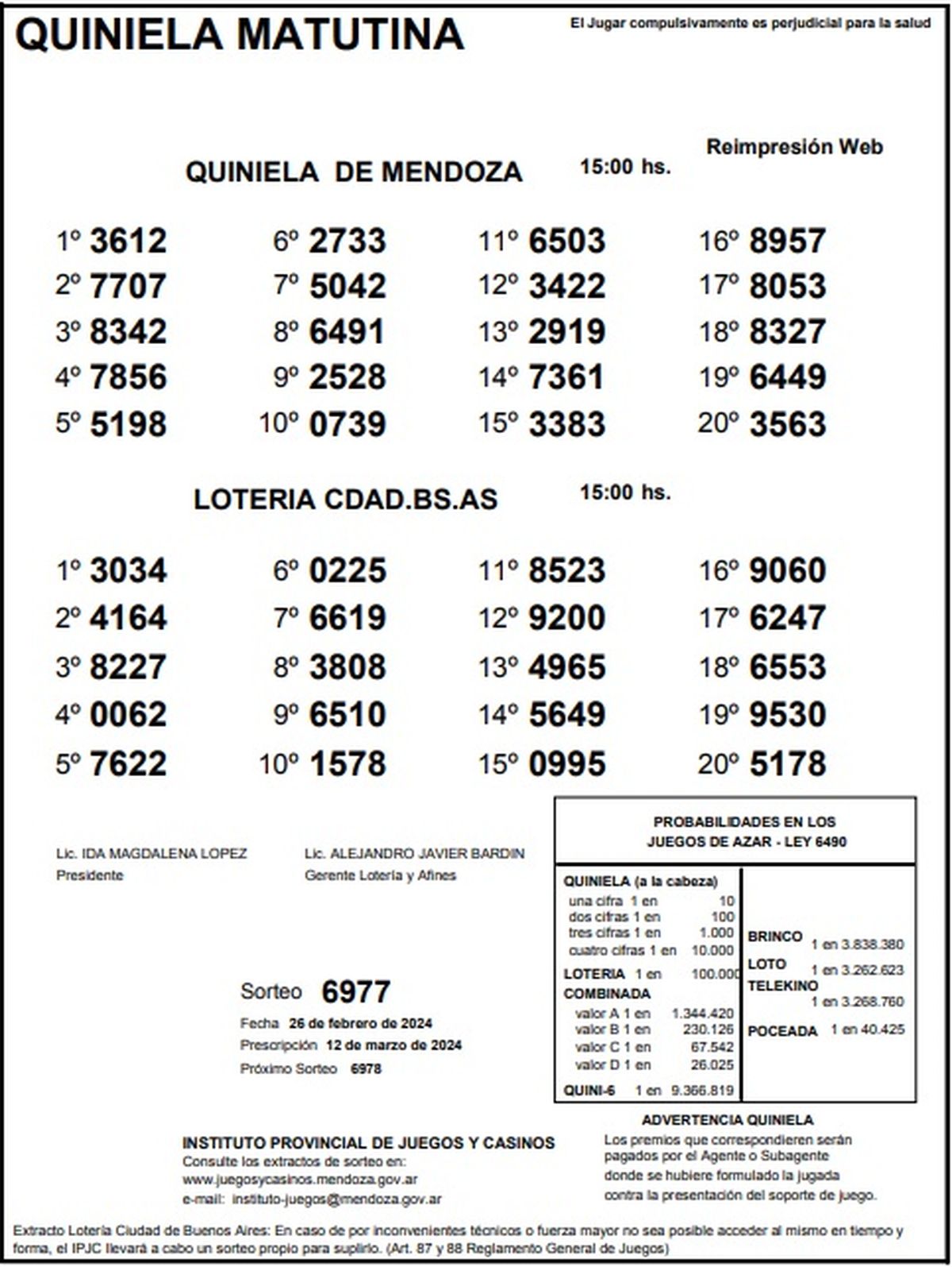 Resultados Quiniela de Mendoza: La Matutina del 26 de febrero 2024