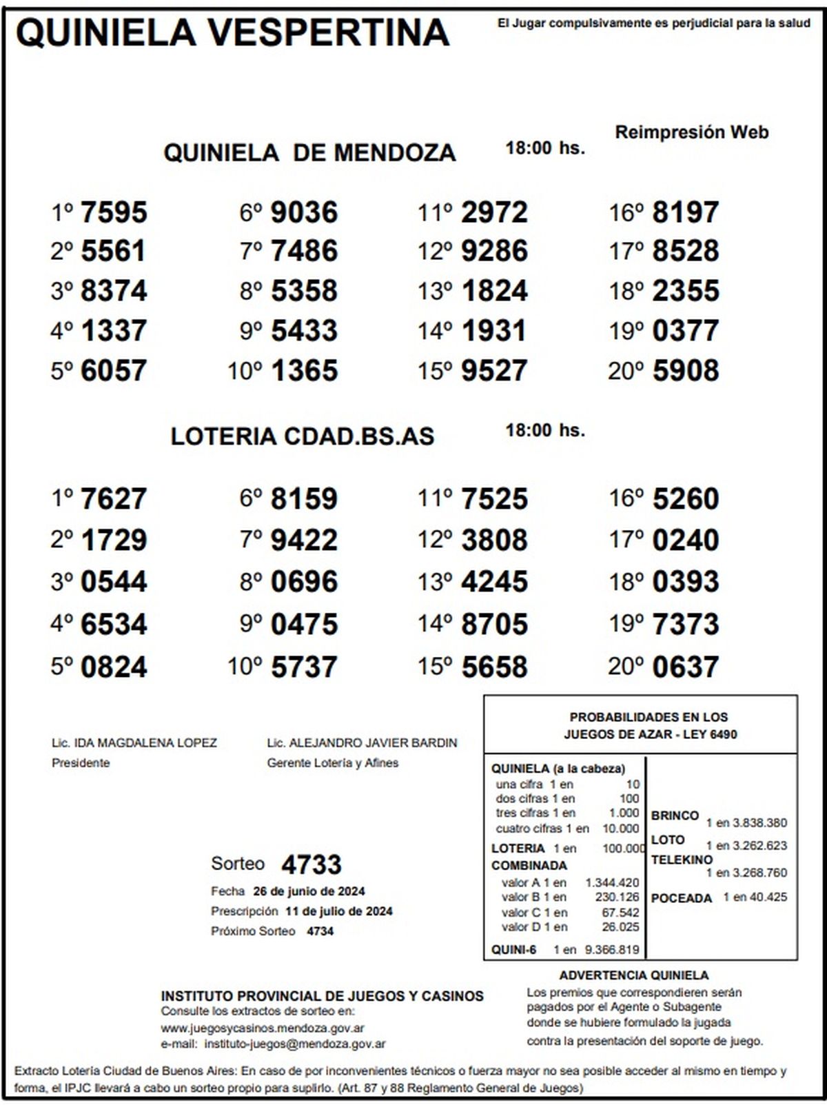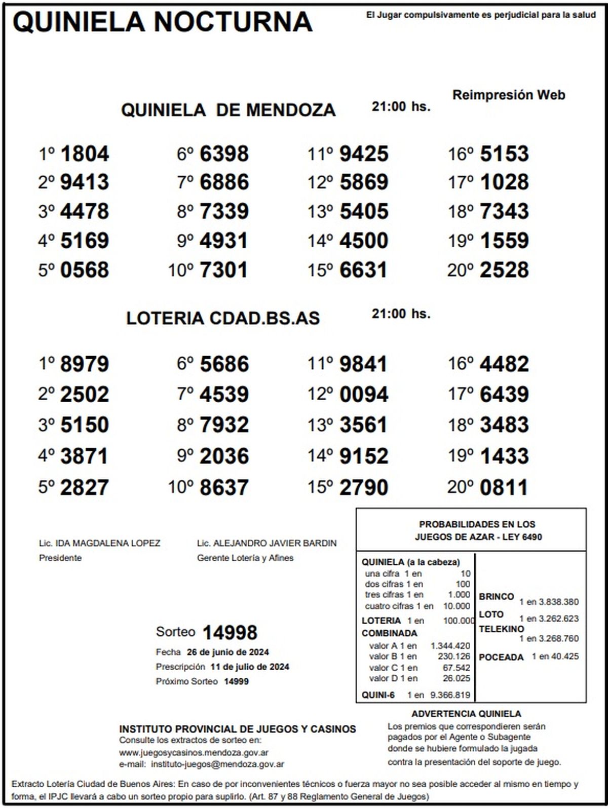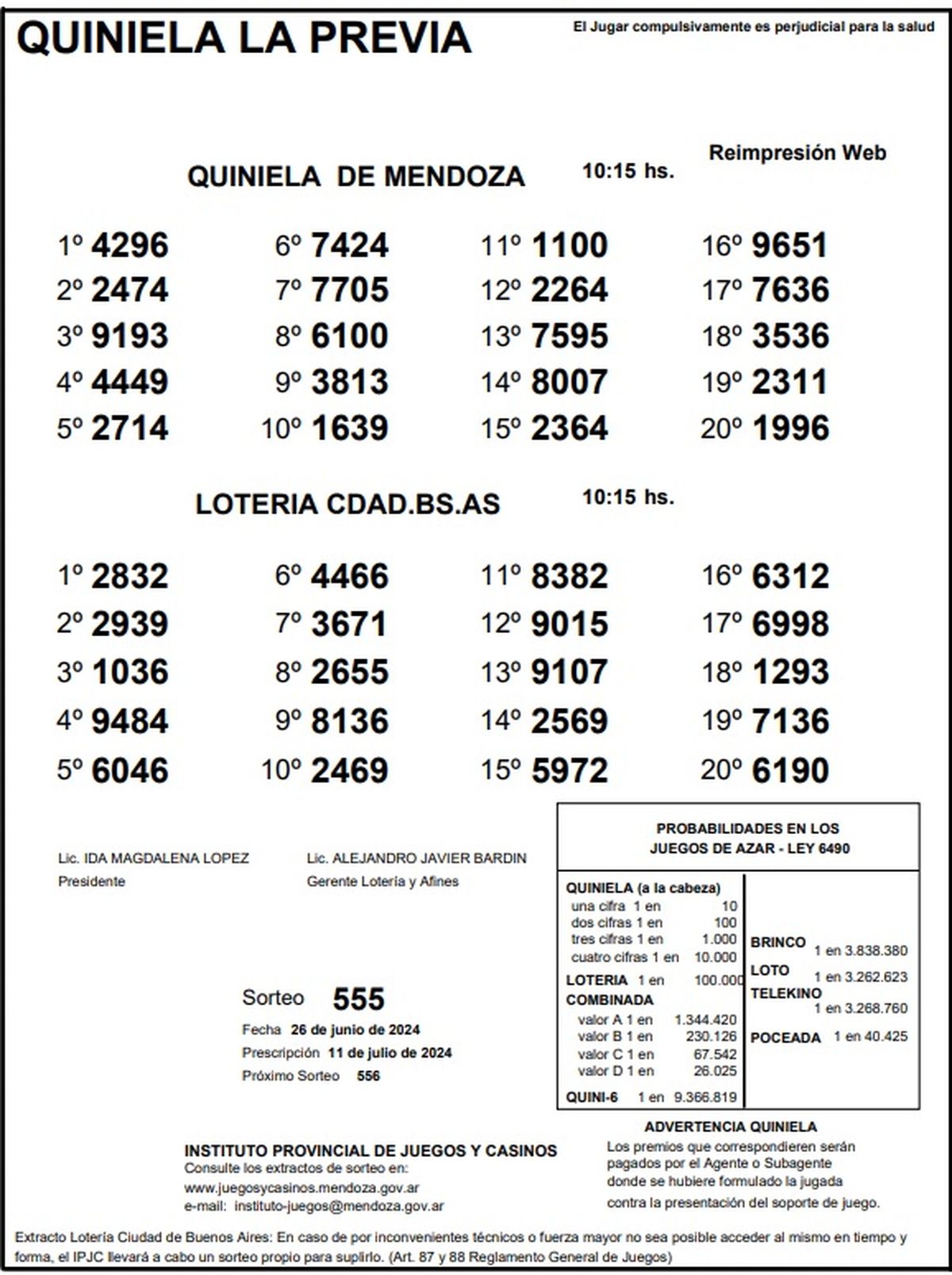 Resultados Quiniela de Mendoza: La Previa del 26 de junio 2024