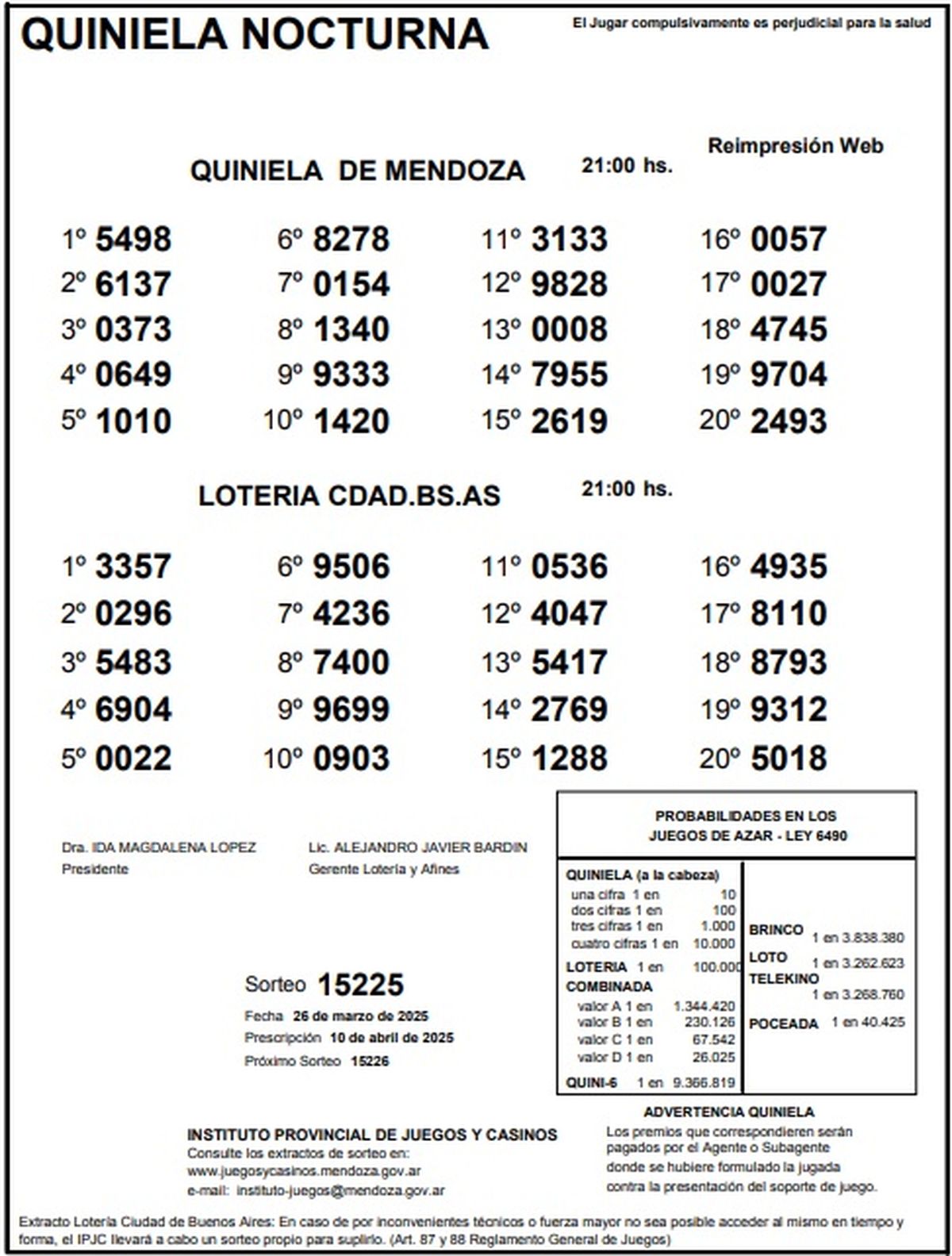 Quiniela de Mendoza: resultados de la Nocturna de hoy, 26 de marzo de 2025