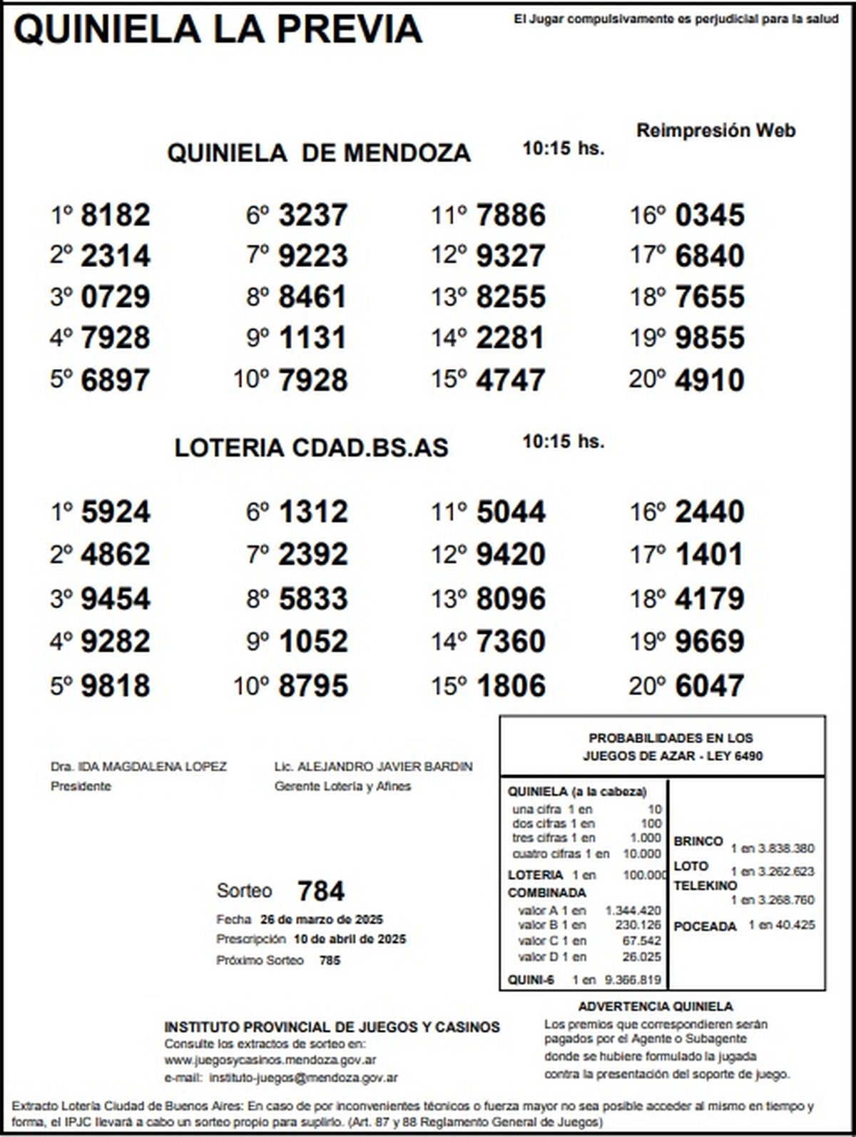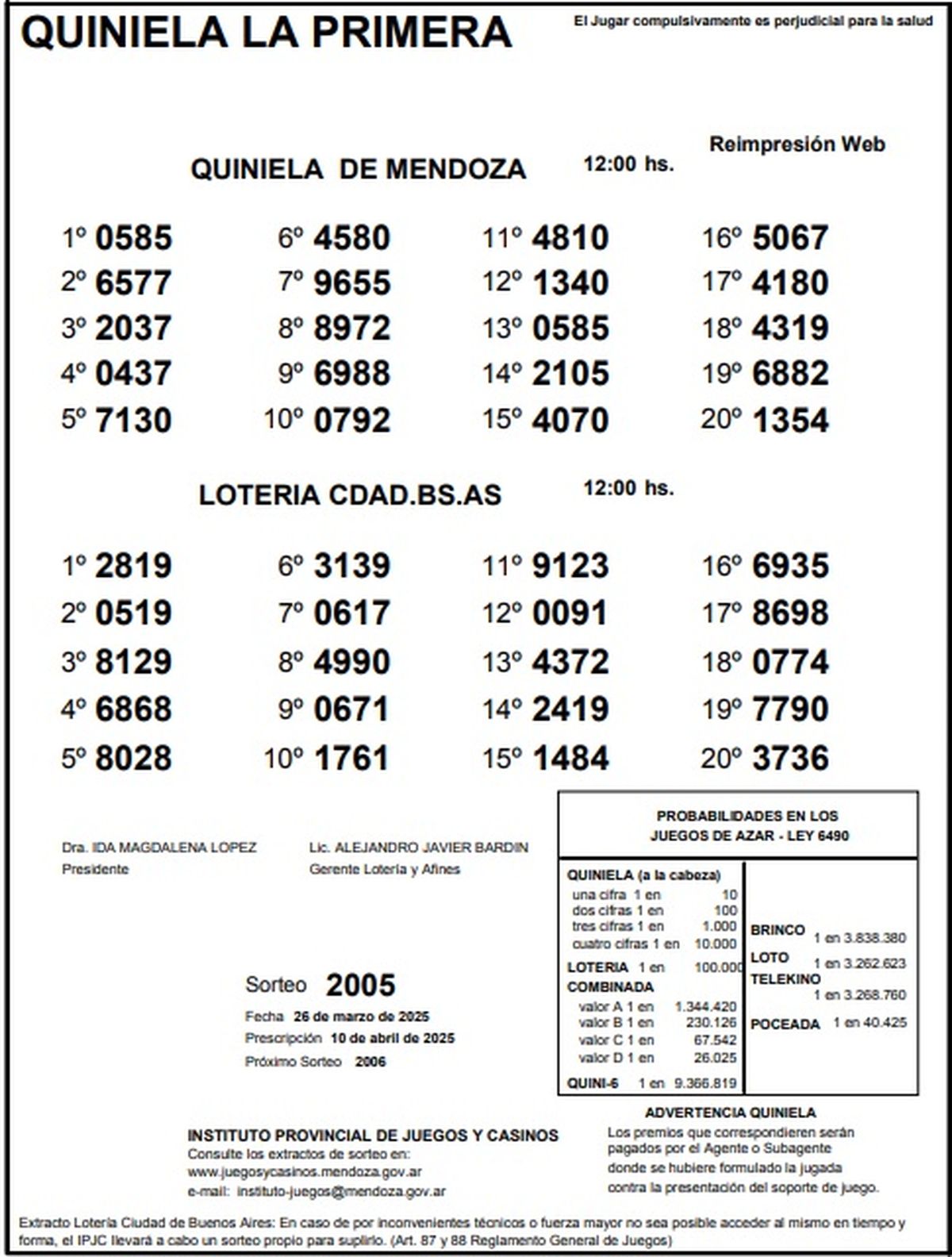 Resultados Quiniela de Mendoza: La Previa del 26 de marzo de 2025