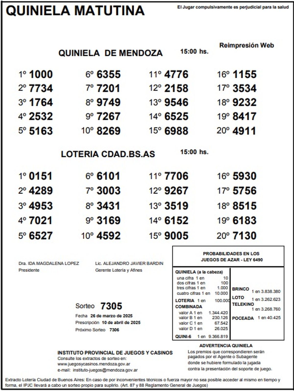 Resultados Quiniela de Mendoza: La Matutina del 26 de marzo de 2025