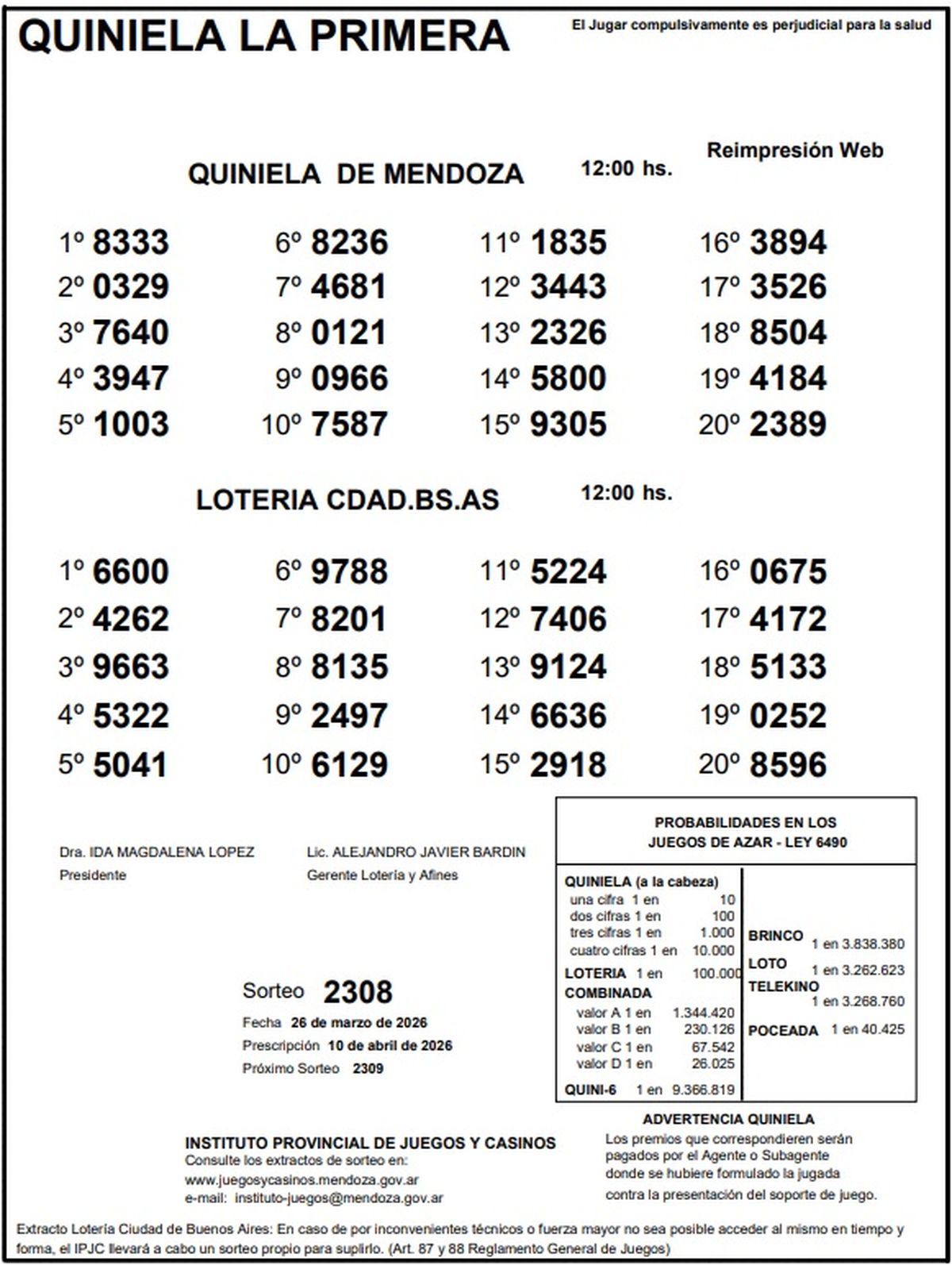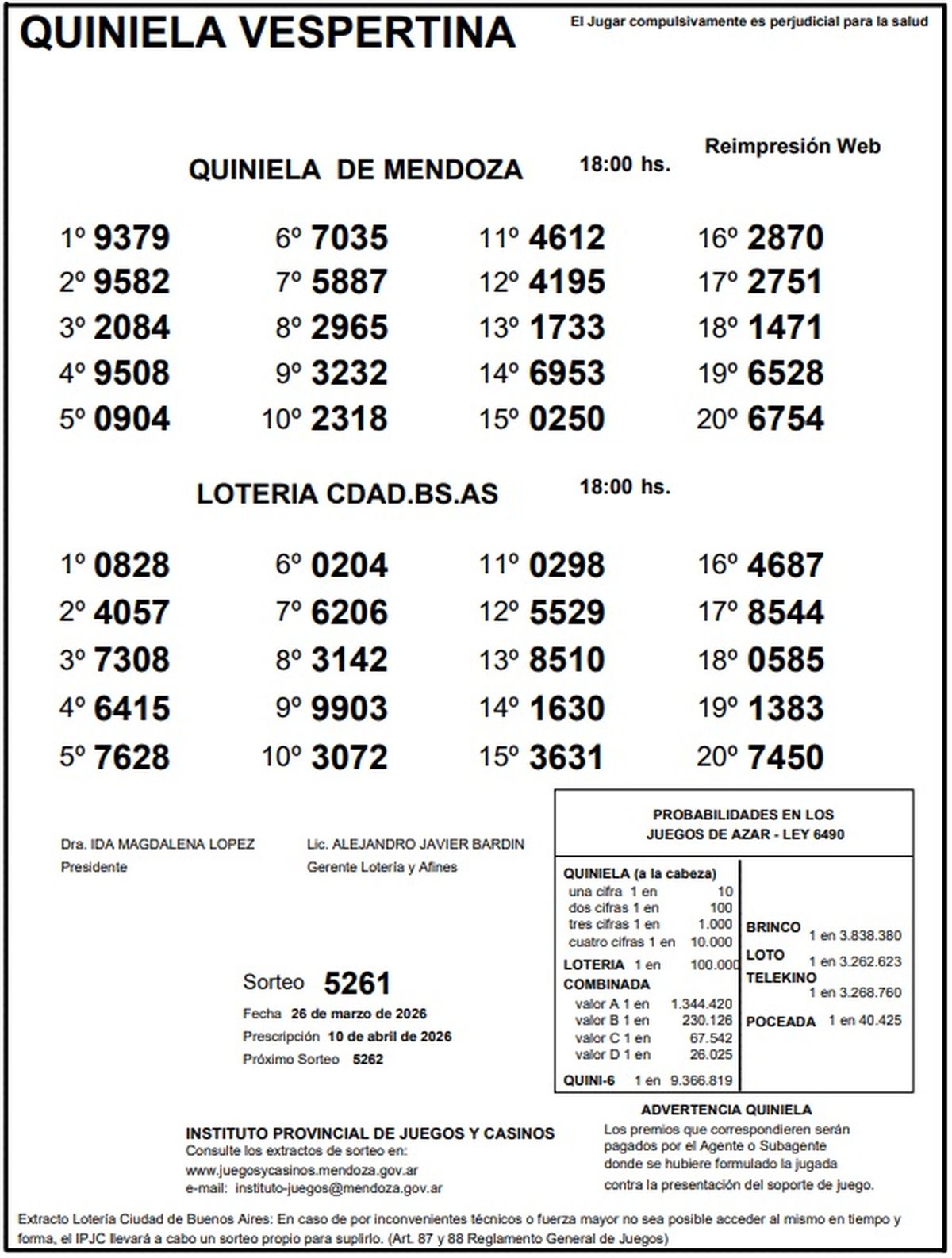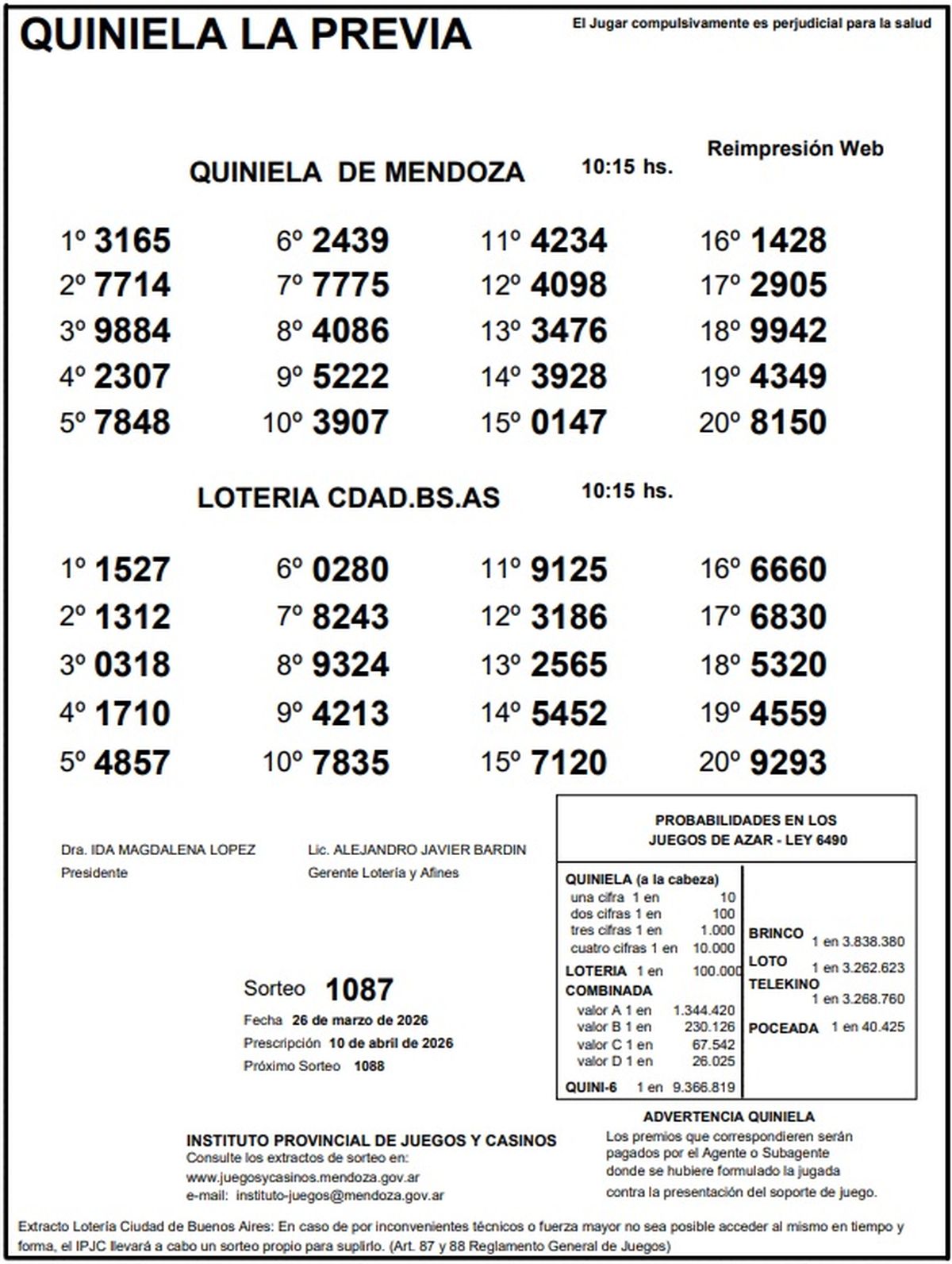 Resultados Quiniela de Mendoza: La Previa del 26 de marzo de 2026