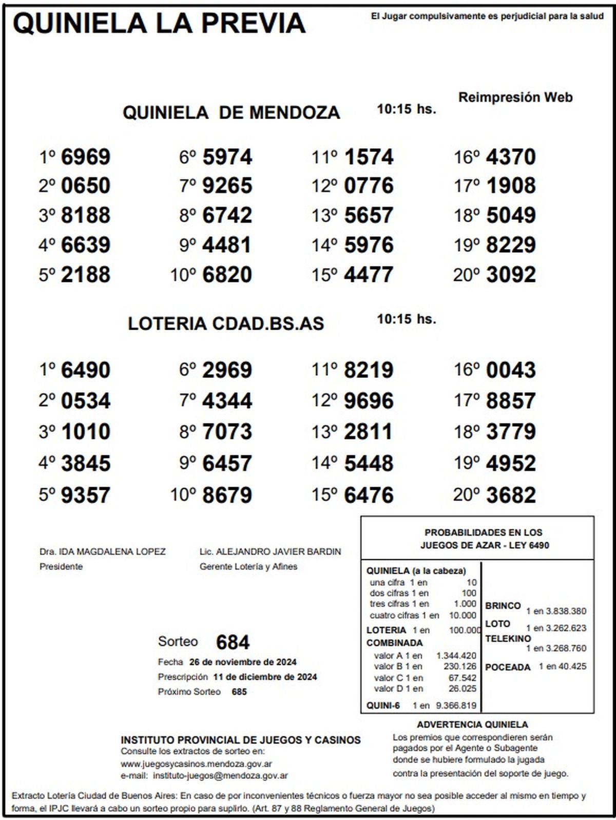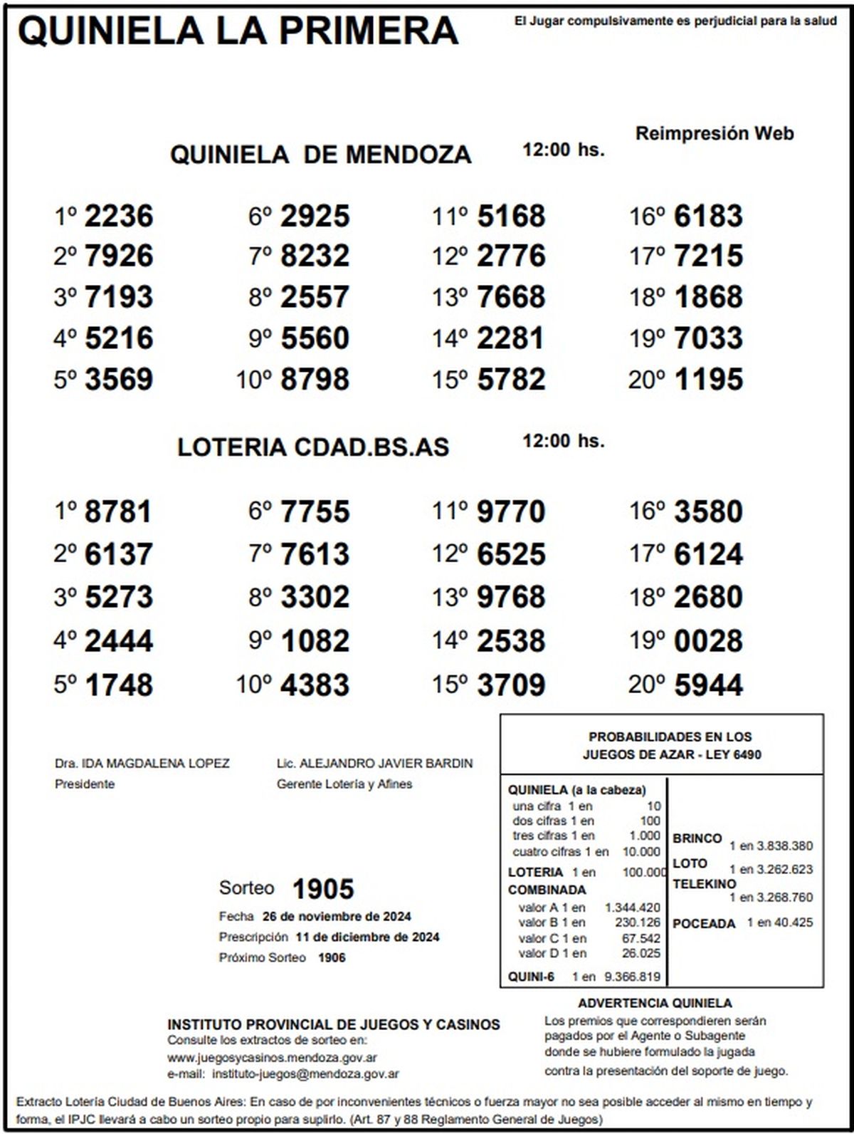 Resultados Quiniela de Mendoza: La Previa del 26 de noviembre de 2024