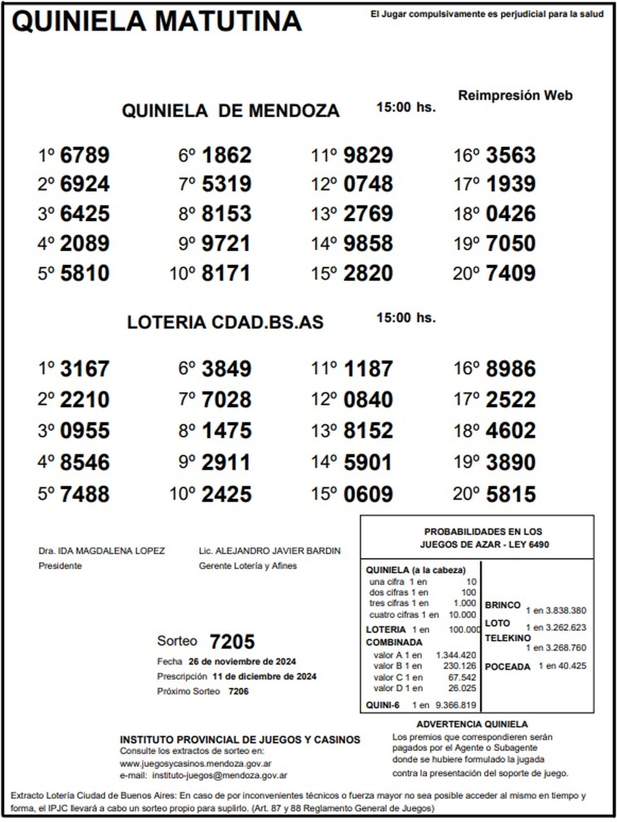 Resultados Quiniela de Mendoza: La Matutina del 26 de noviembre de 2024