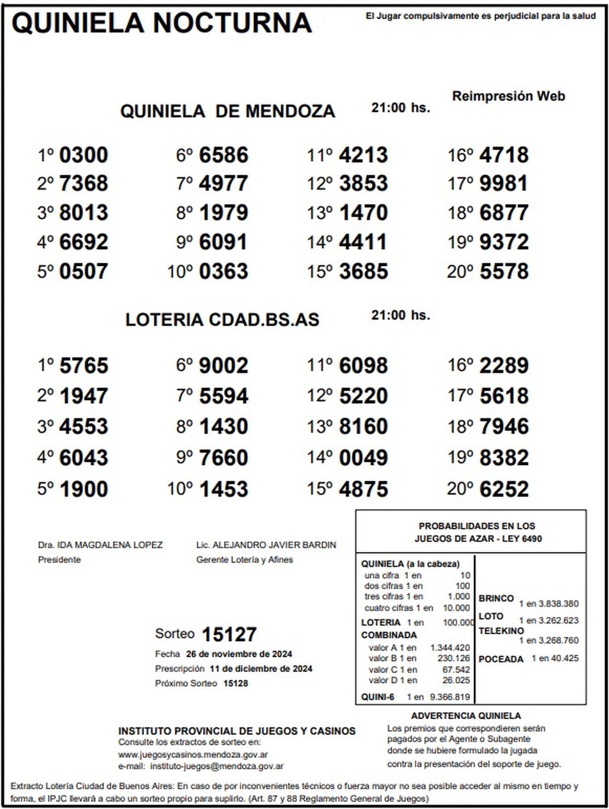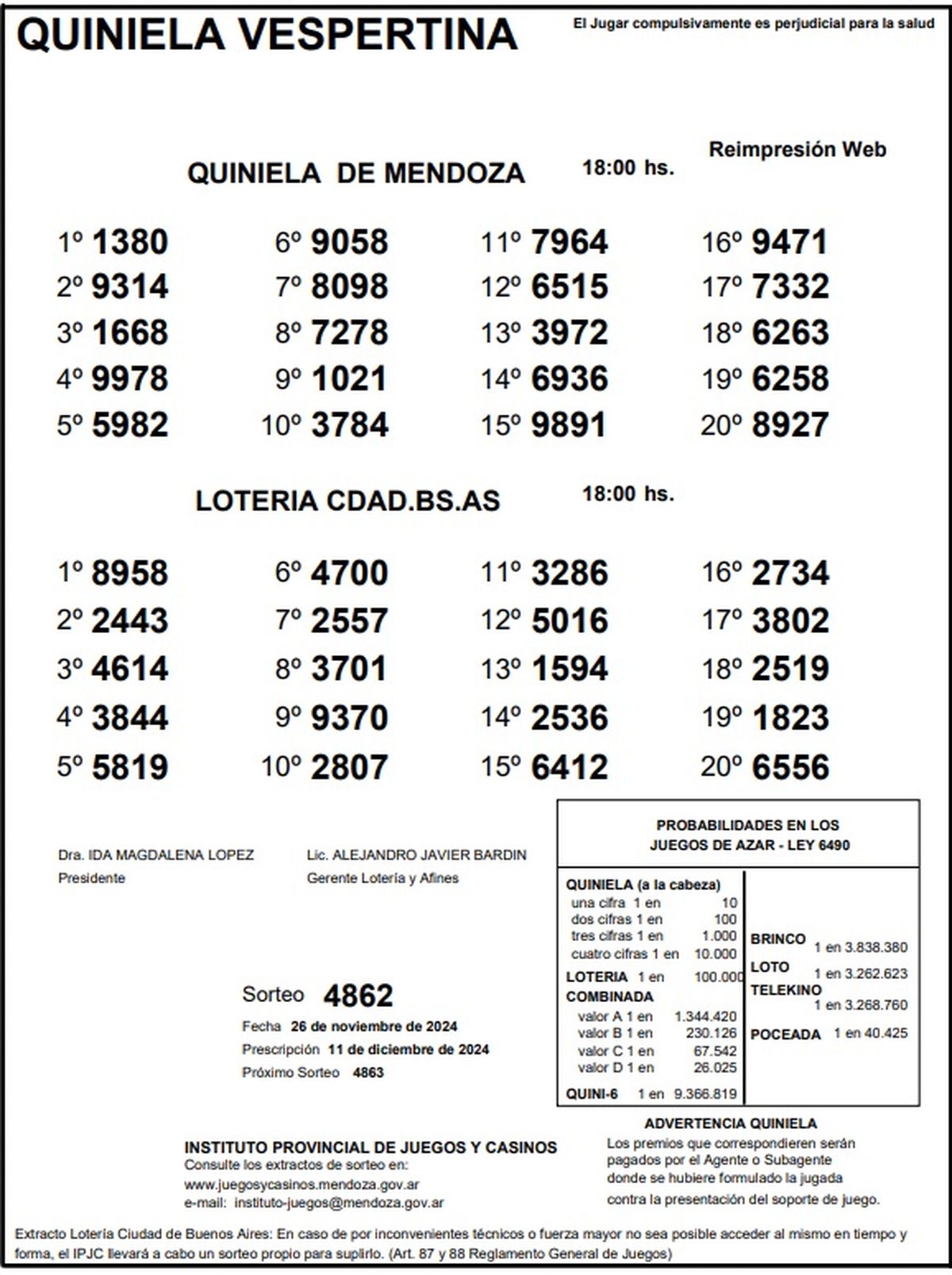 Quiniela de Mendoza: resultados de la Nocturna de hoy, 26 de noviembre
