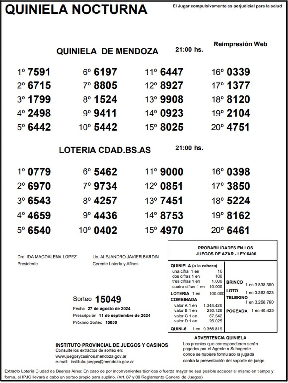 Quiniela de Mendoza: resultados de la Nocturna de hoy, 27 de agosto