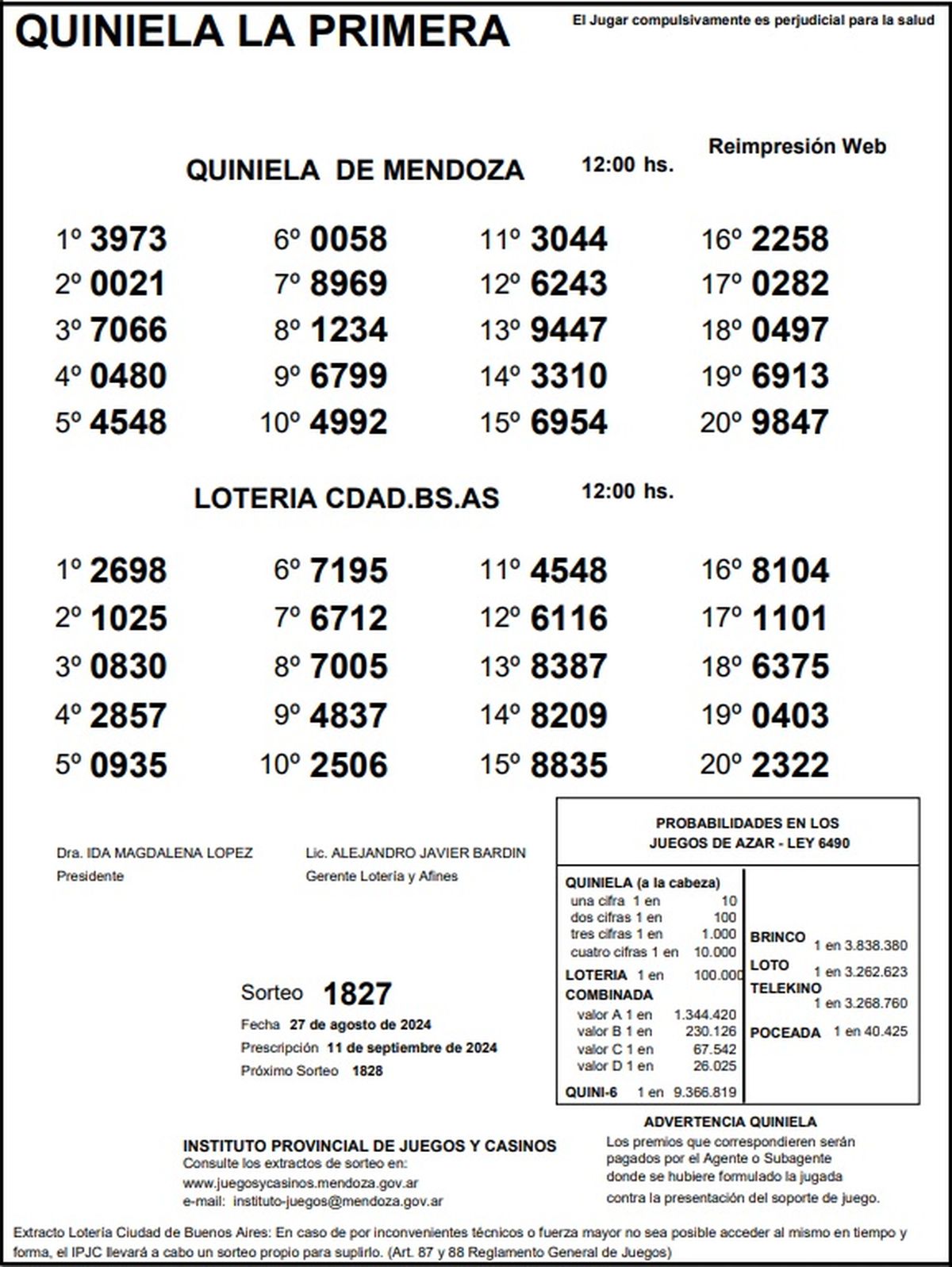 Resultados Quiniela de Mendoza: La Primera del 27 de agosto 2024