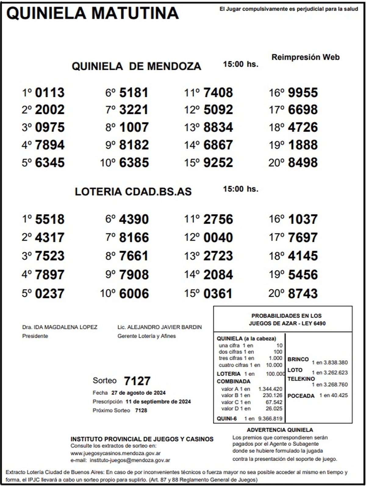 Resultados Quiniela de Mendoza: La Matutina del 27 de agosto 2024
