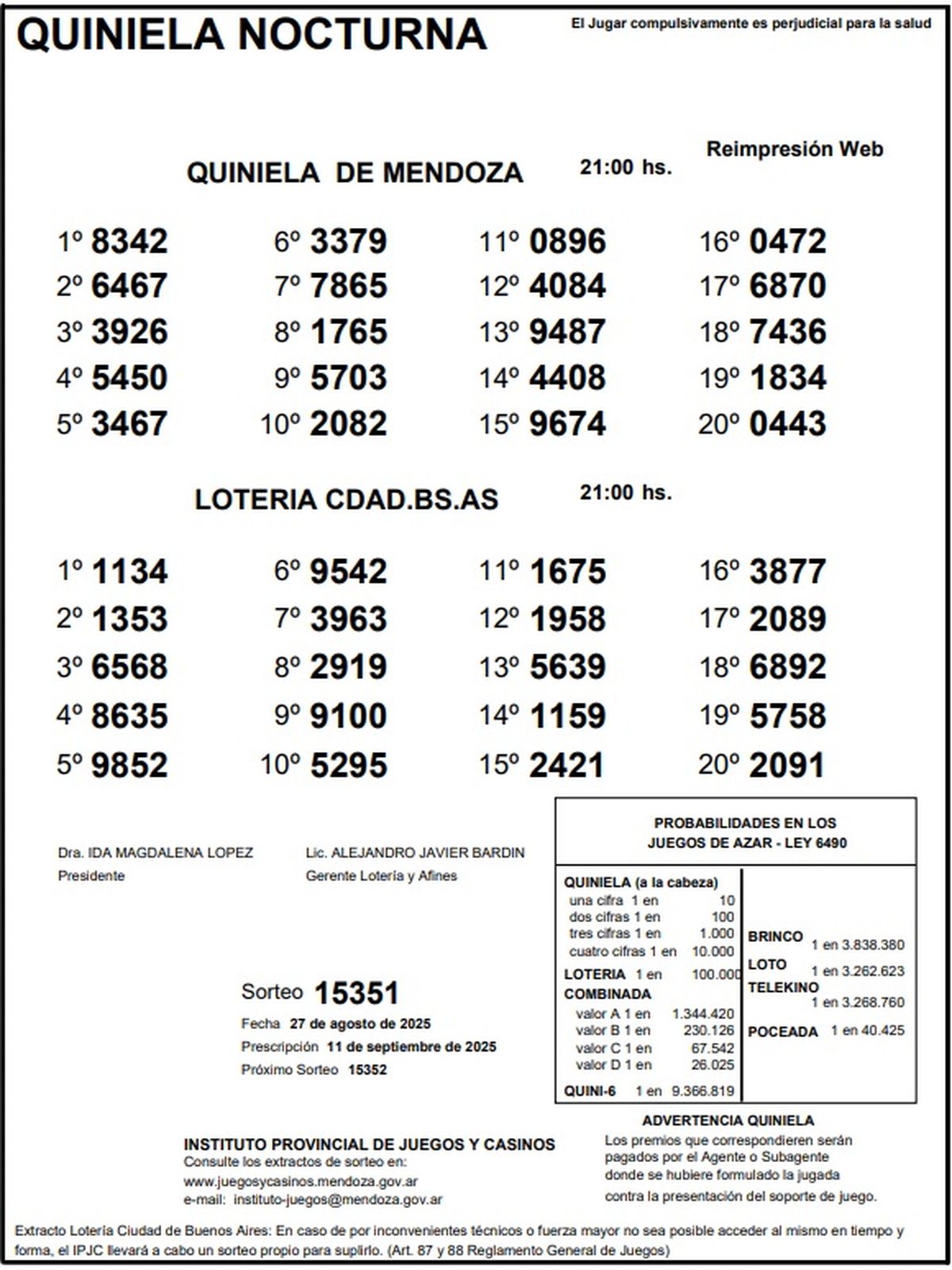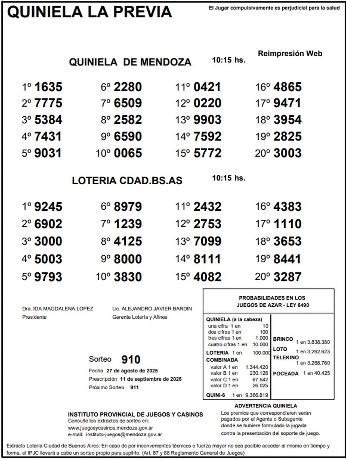 Resultados Quiniela de Mendoza: La Previa del 27 de agosto de 2025