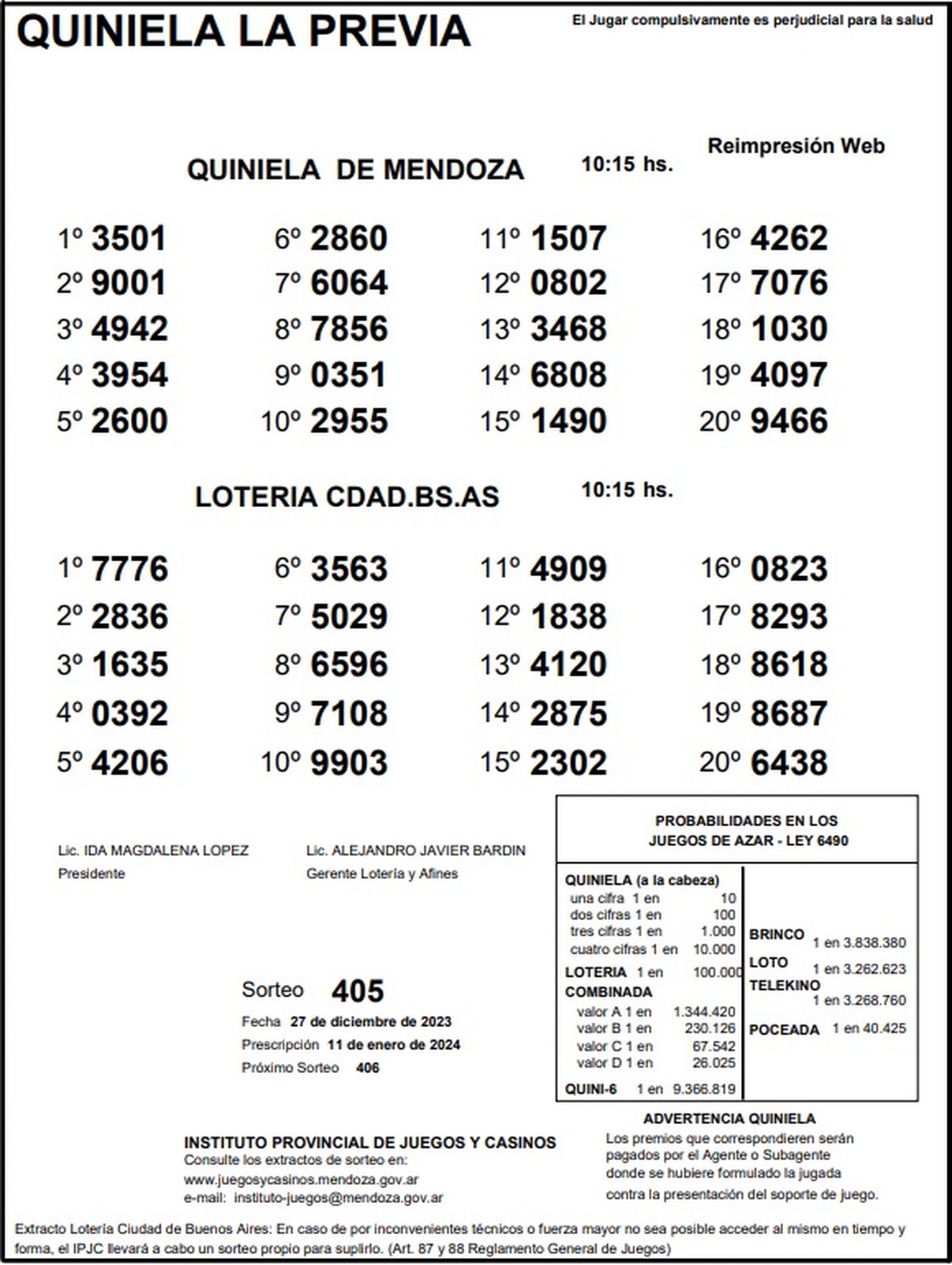 Resultados Quiniela de Mendoza: La Previa del 27 de diciembre 2023