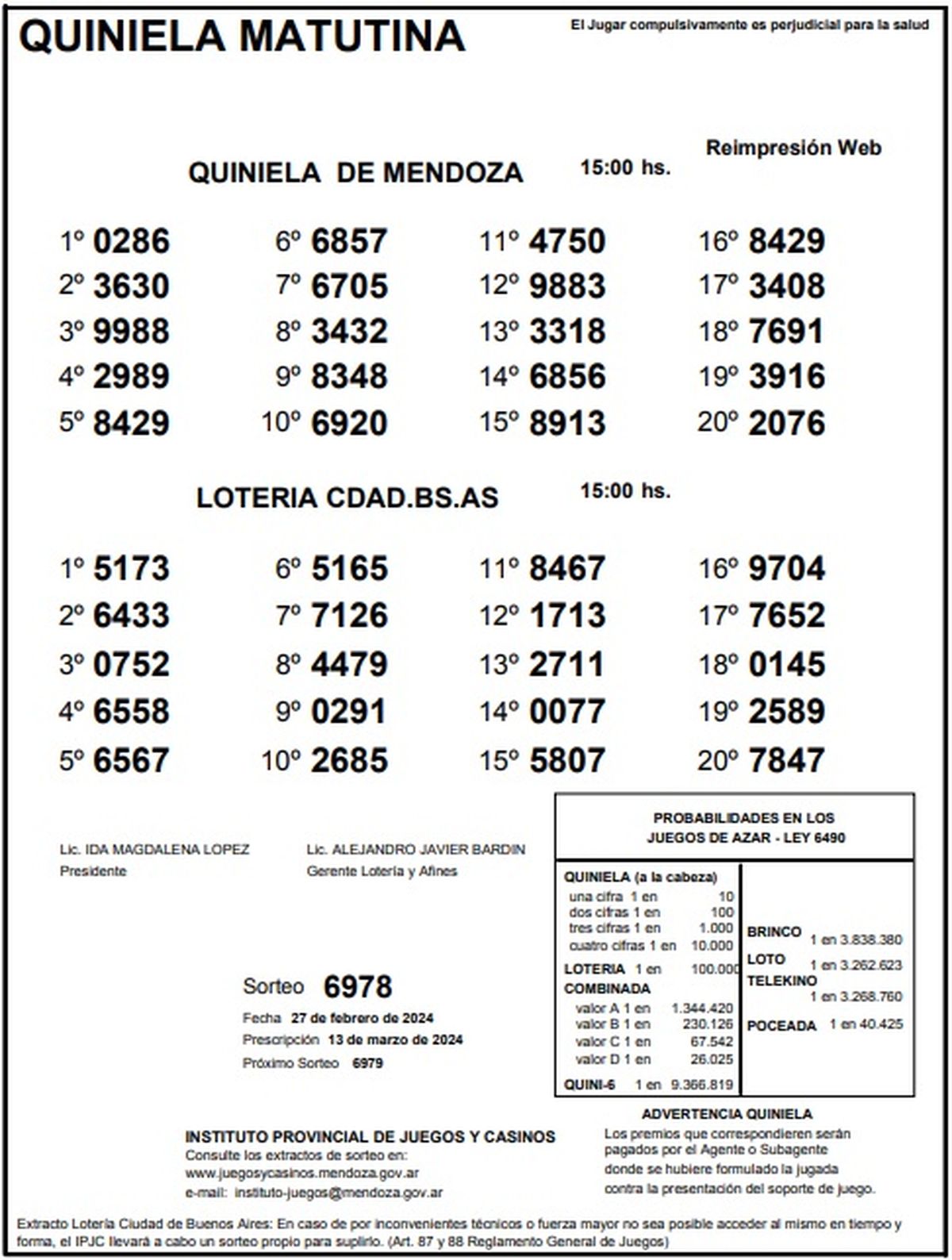 Resultados Quiniela de Mendoza: La Matutina del 27 de febrero 2024