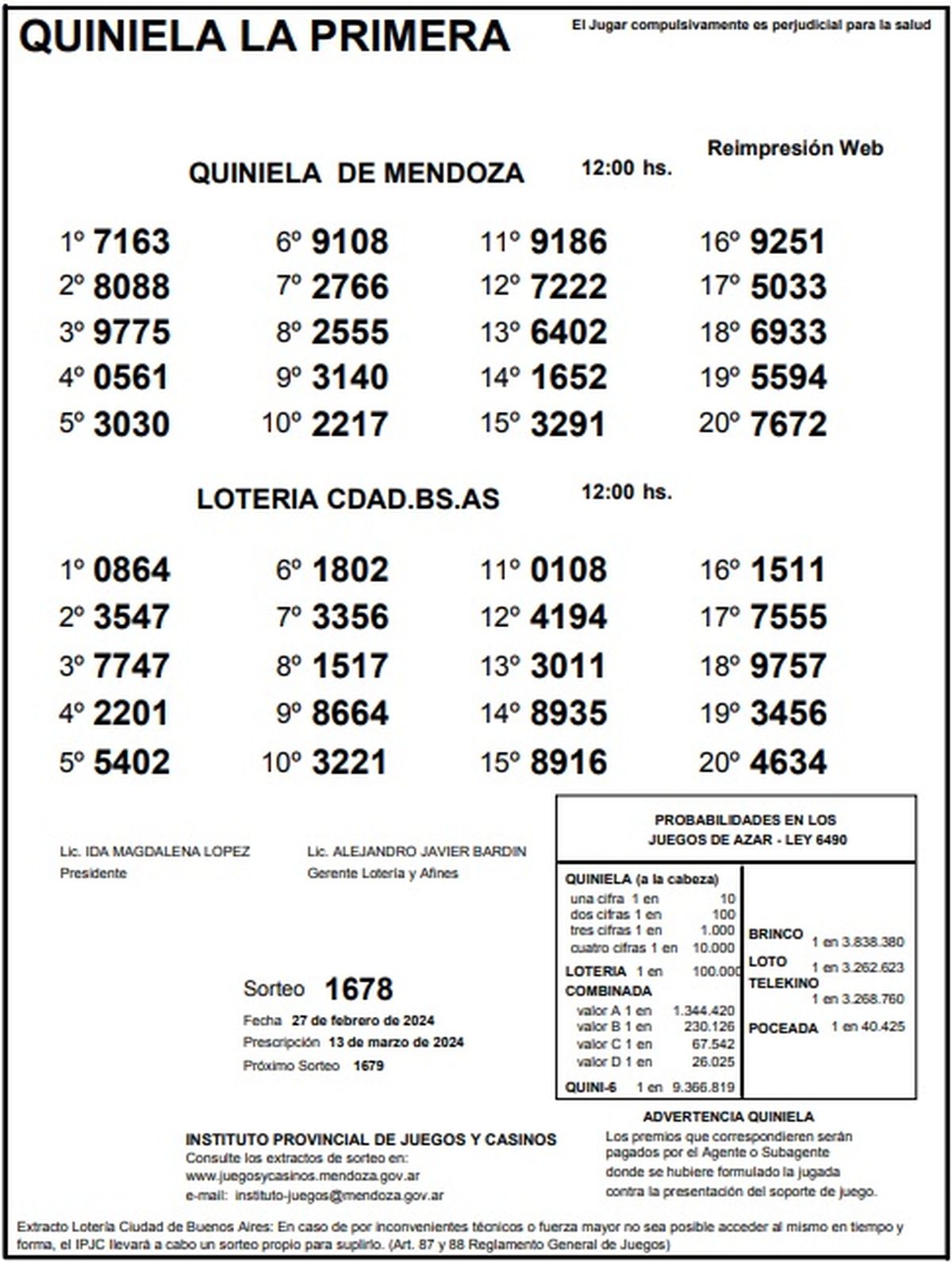 Resultados Quiniela de Mendoza: La Primera del 27 de febrero 2024