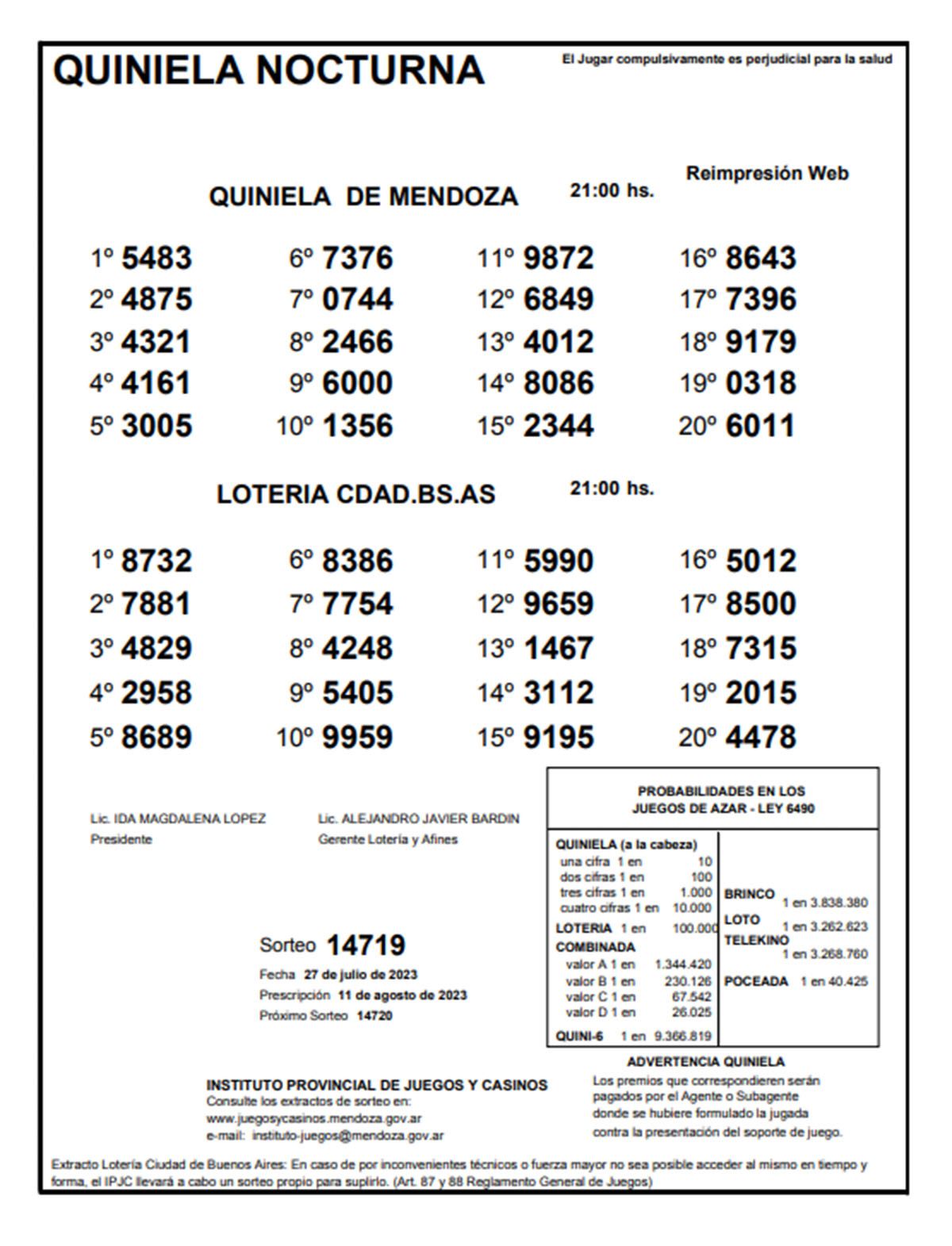 ►TE PUEDE INTERESAR: Resultados de la Quiniela de Mendoza: La Previa del 27 de julio