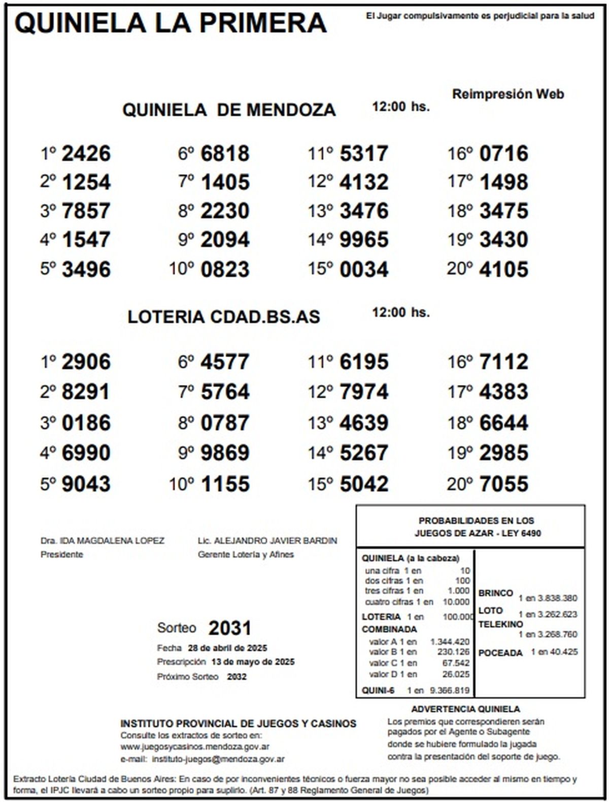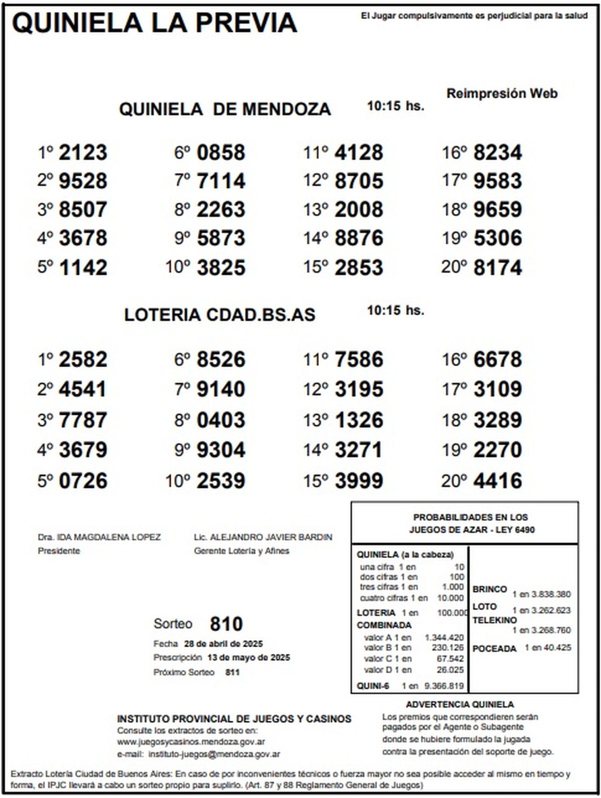 Resultados Quiniela de Mendoza: La Previa del 28 de abril de 2025