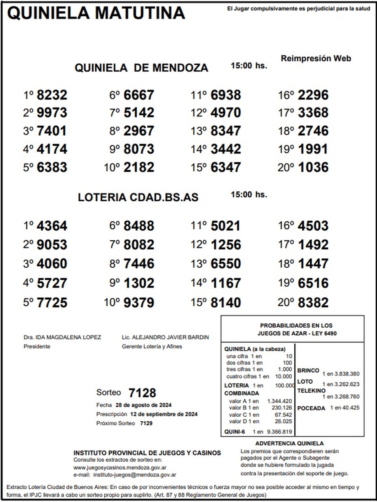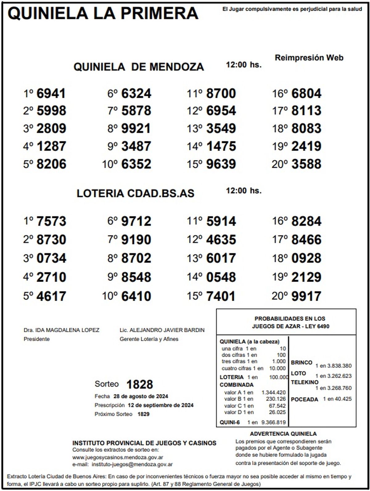 Resultados Quiniela de Mendoza: La Primera del 28 de agosto 2024