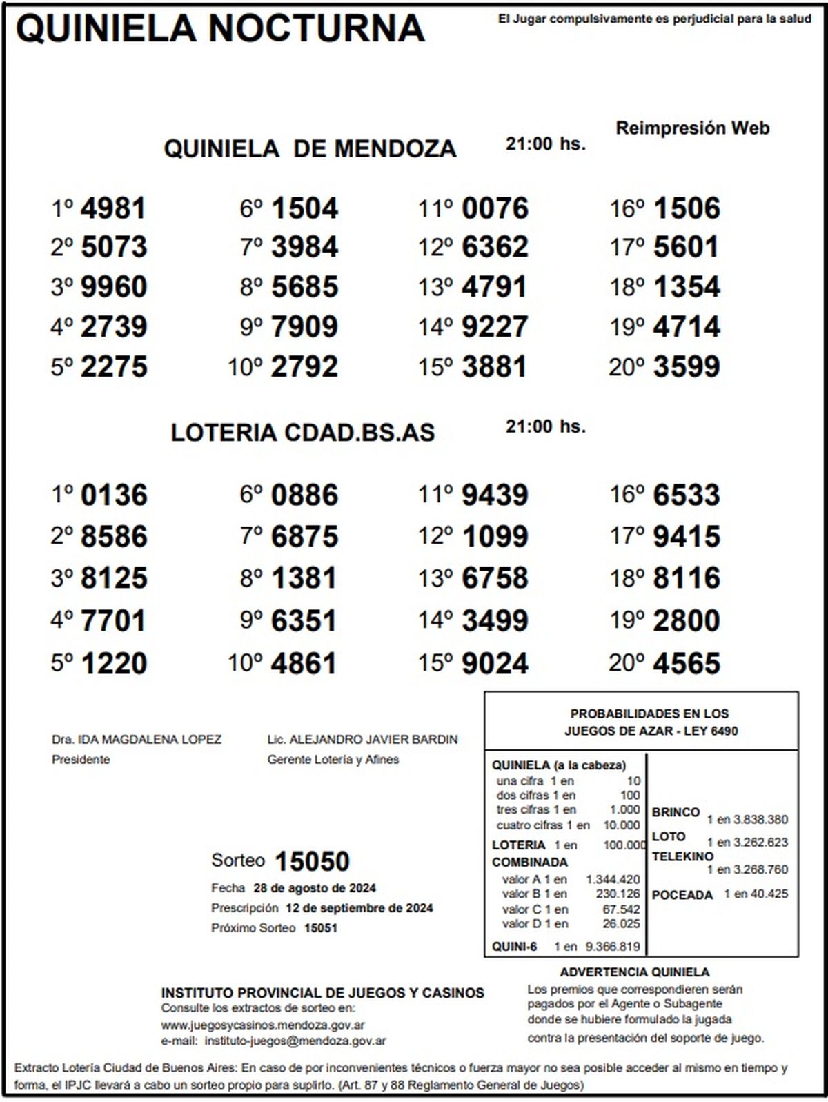 Quiniela de Mendoza: resultados de la Nocturna de hoy, 28 de agosto
