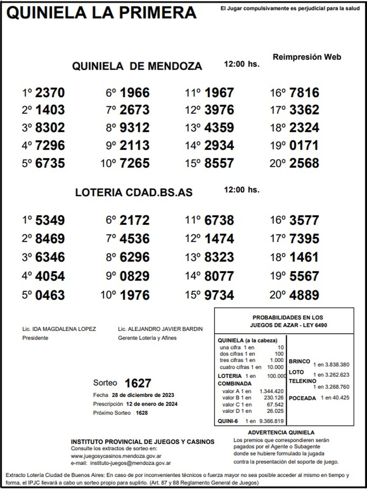 Resultados Quiniela de Mendoza: La Primera del 28 de diciembre 2023