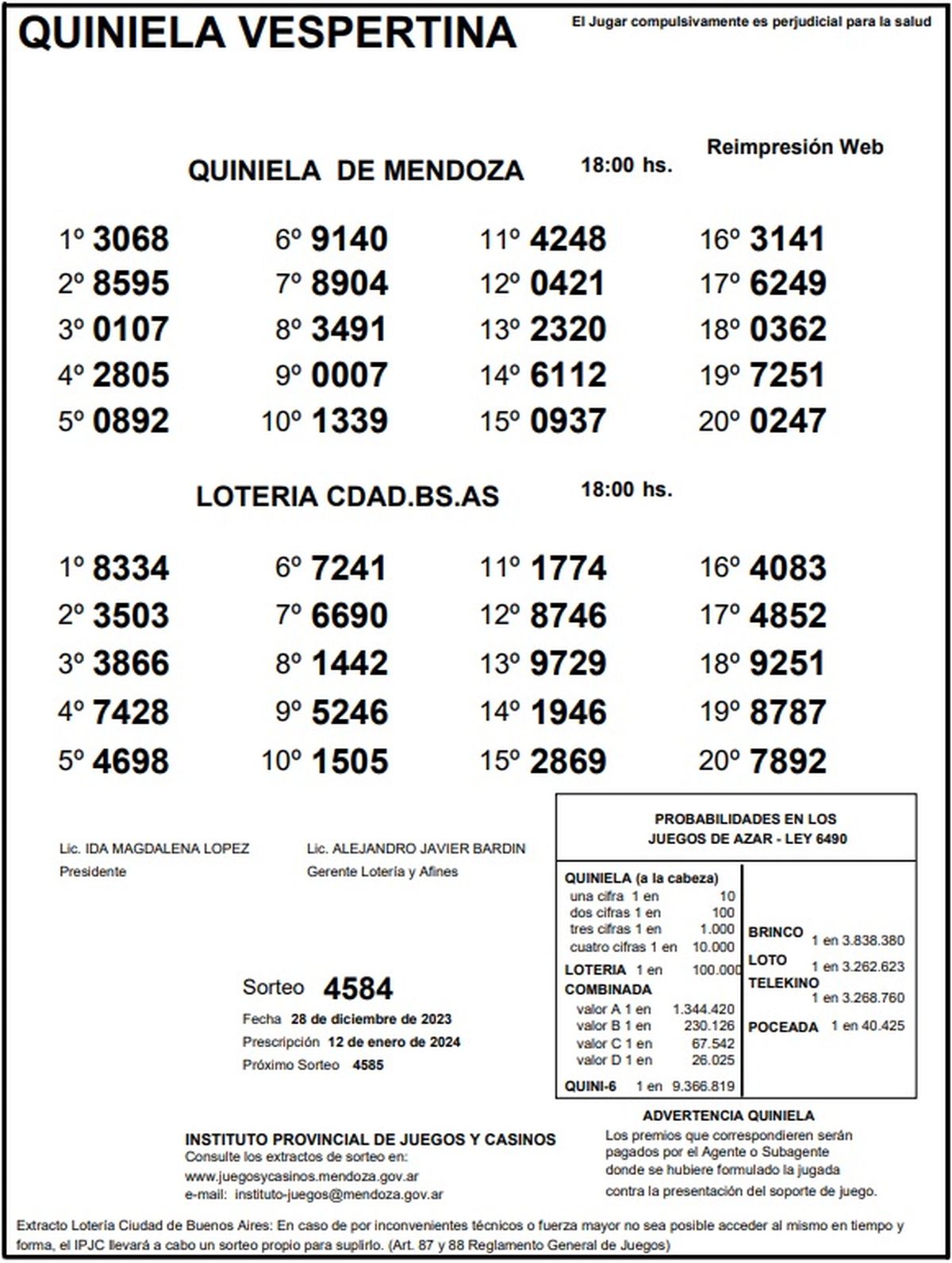 Resultados Quiniela de Mendoza: La Vespertina del 28 de diciembre 2023