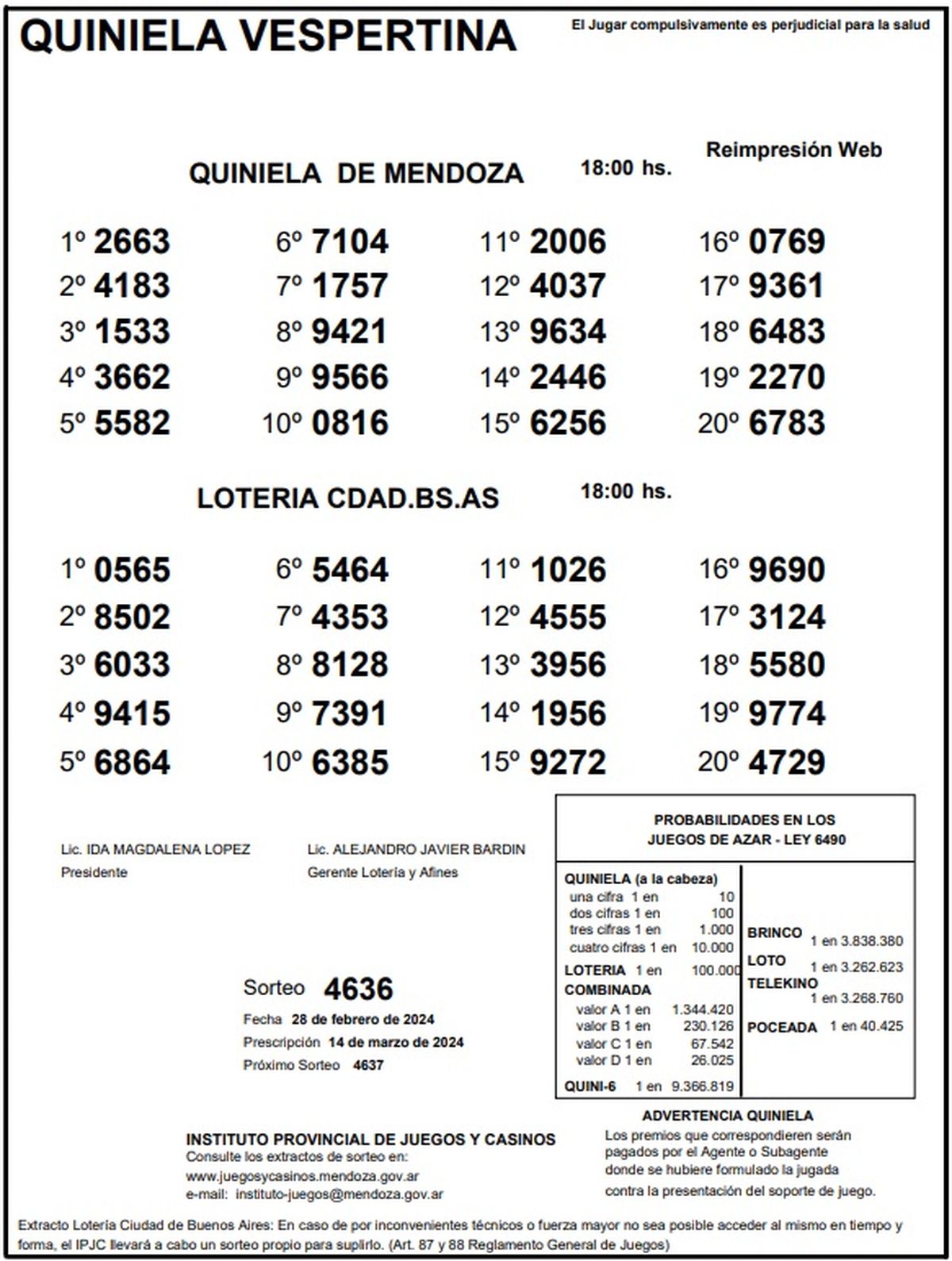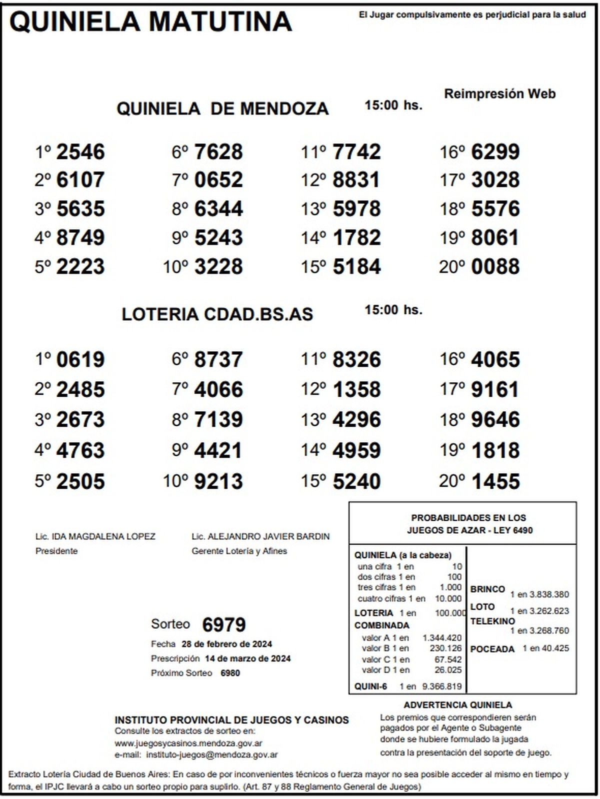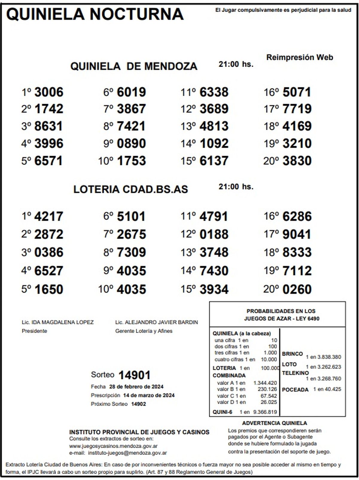 Resultados Quiniela de Mendoza: La Previa del 28 de febrero 2024