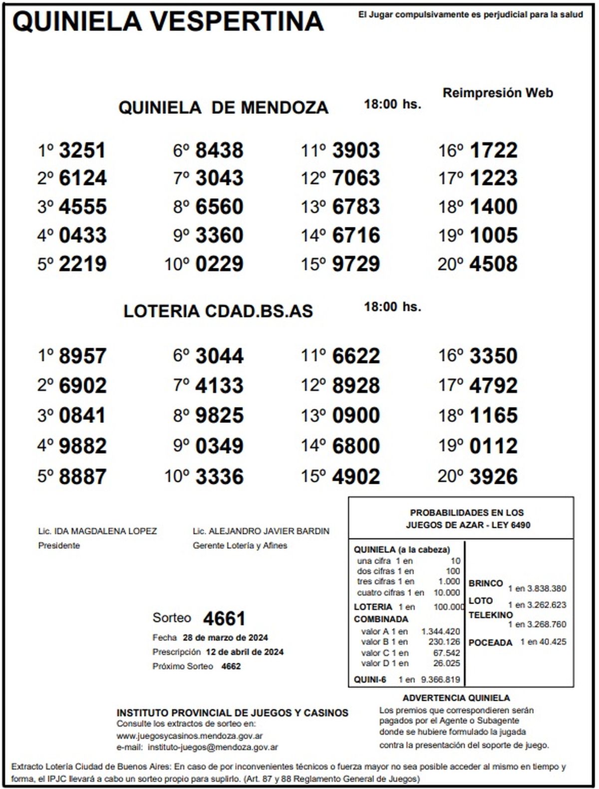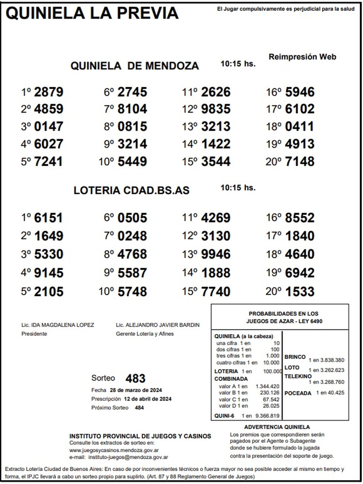 Resultados Quiniela de Mendoza: La Previa del 28 de marzo 2024