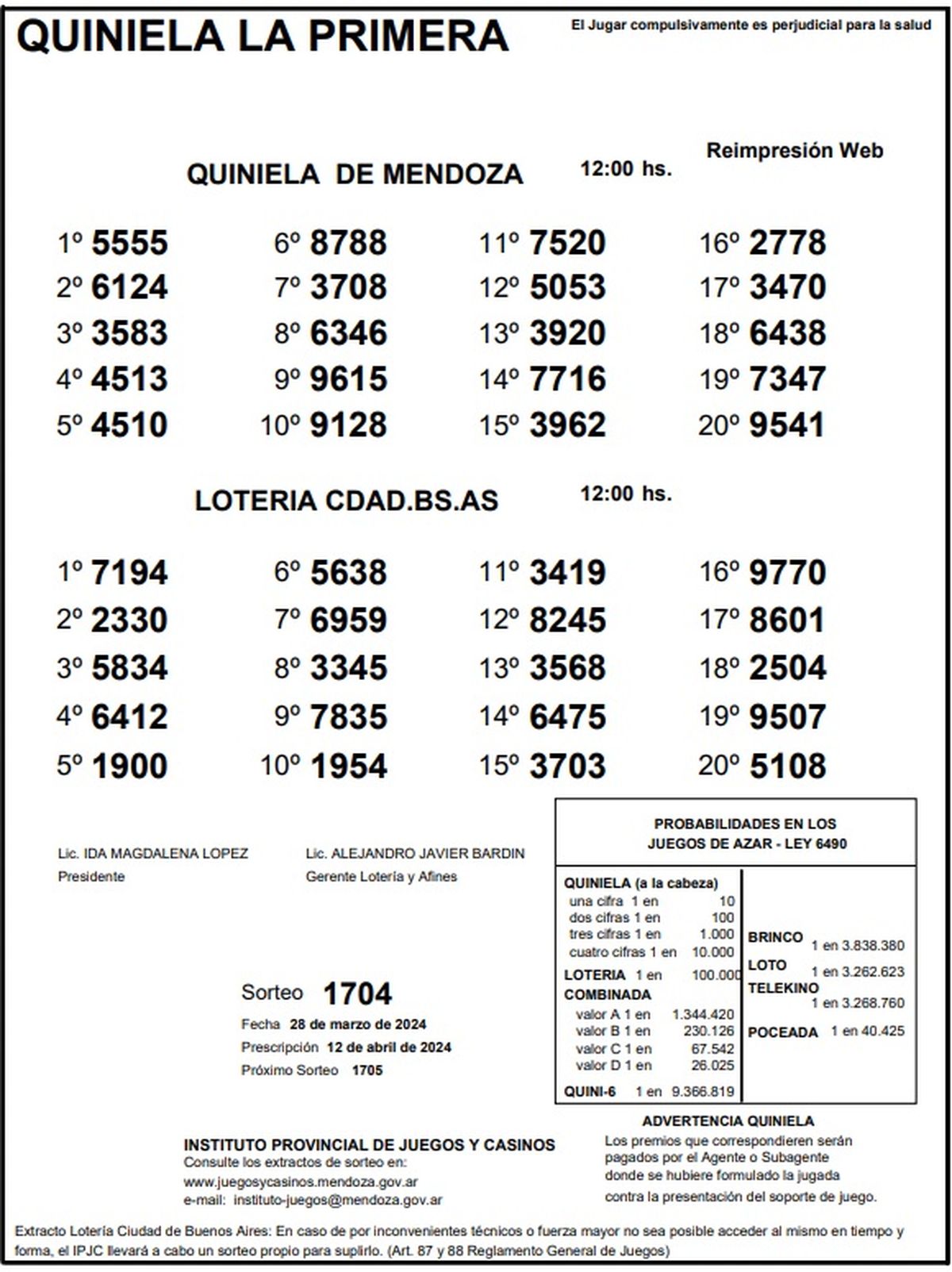 Resultados Quiniela de Mendoza: La Primera del 28 de marzo 2024