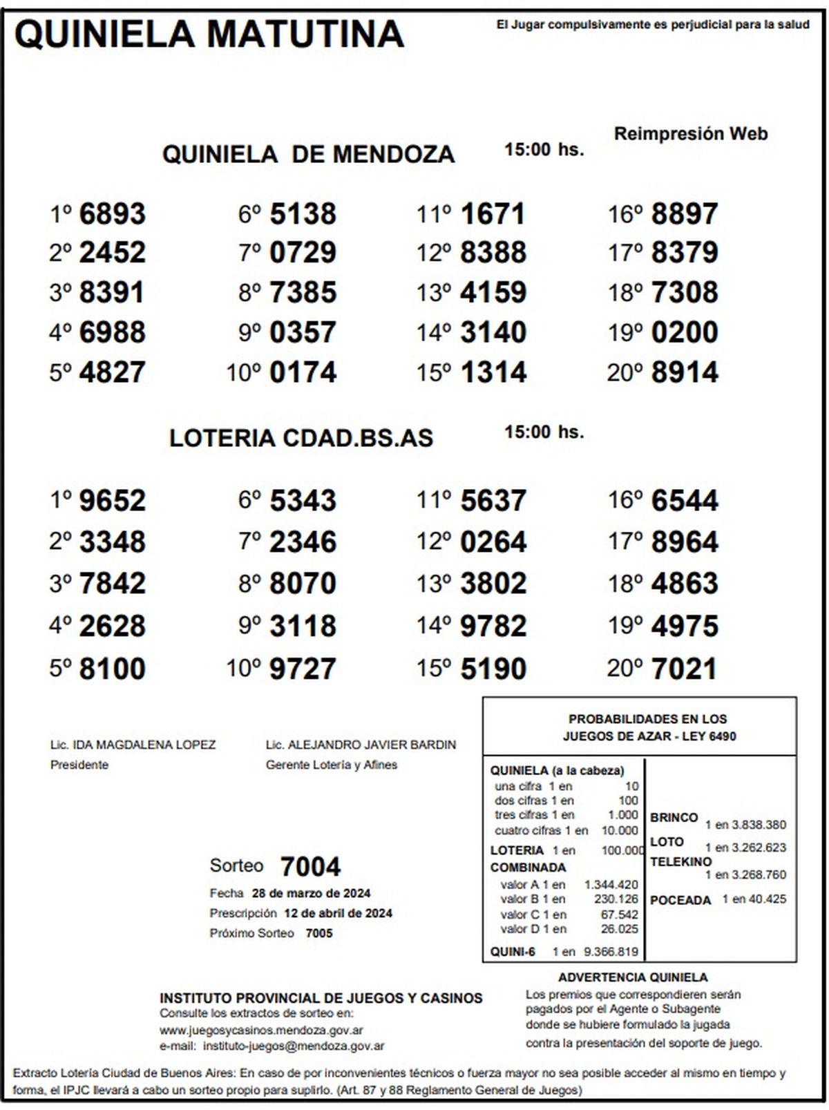 Resultados Quiniela de Mendoza: La Matutina del 28 de marzo 2024