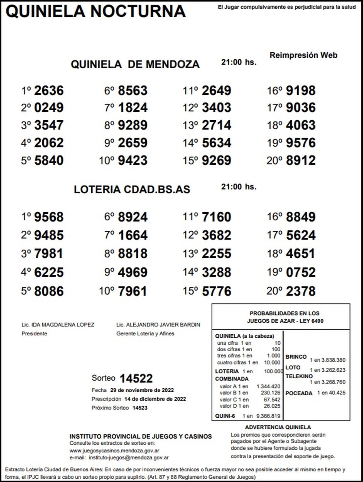 Quiniela de Mendoza: resultados de la Nocturna de hoy, 29 de noviembre de 2022