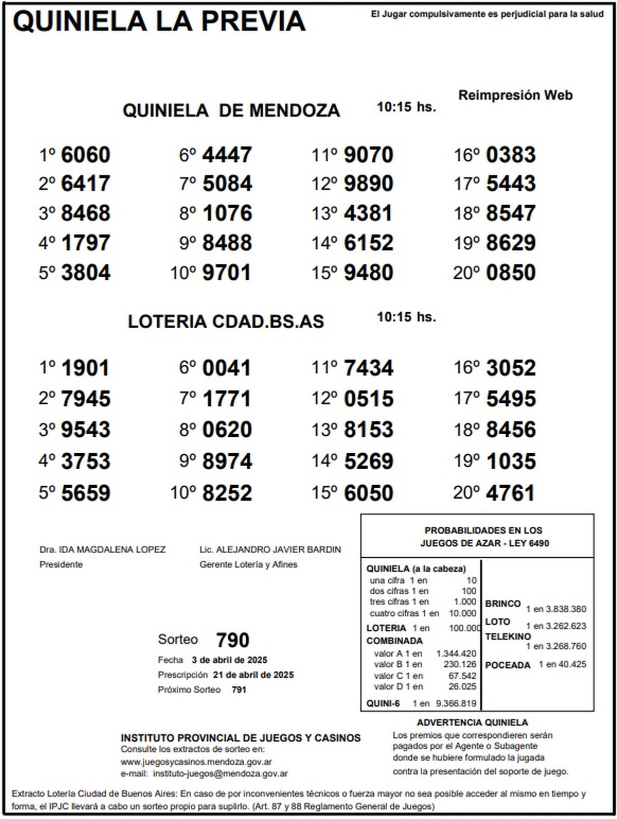 Resultados Quiniela de Mendoza: La Previa del 3 de abril de 2025