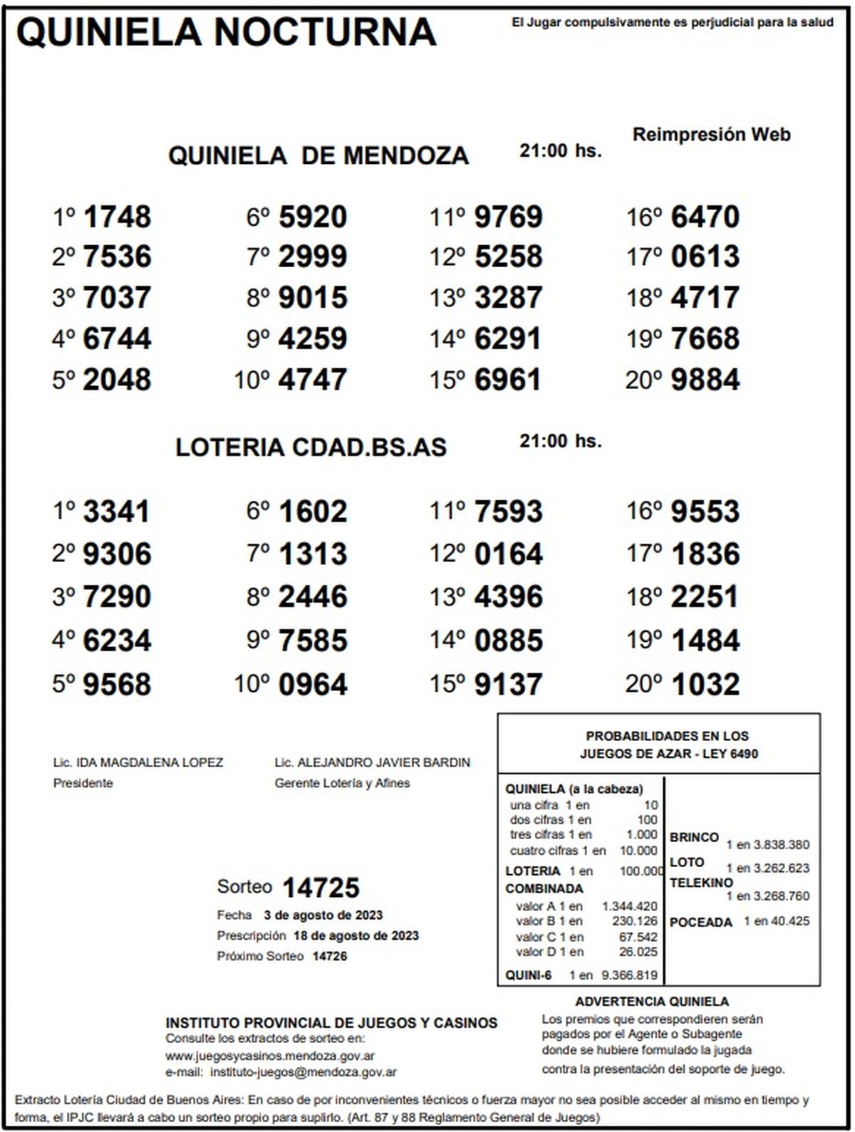 Quiniela de Mendoza: resultados de la Nocturna de hoy, 3 de agosto de 2023