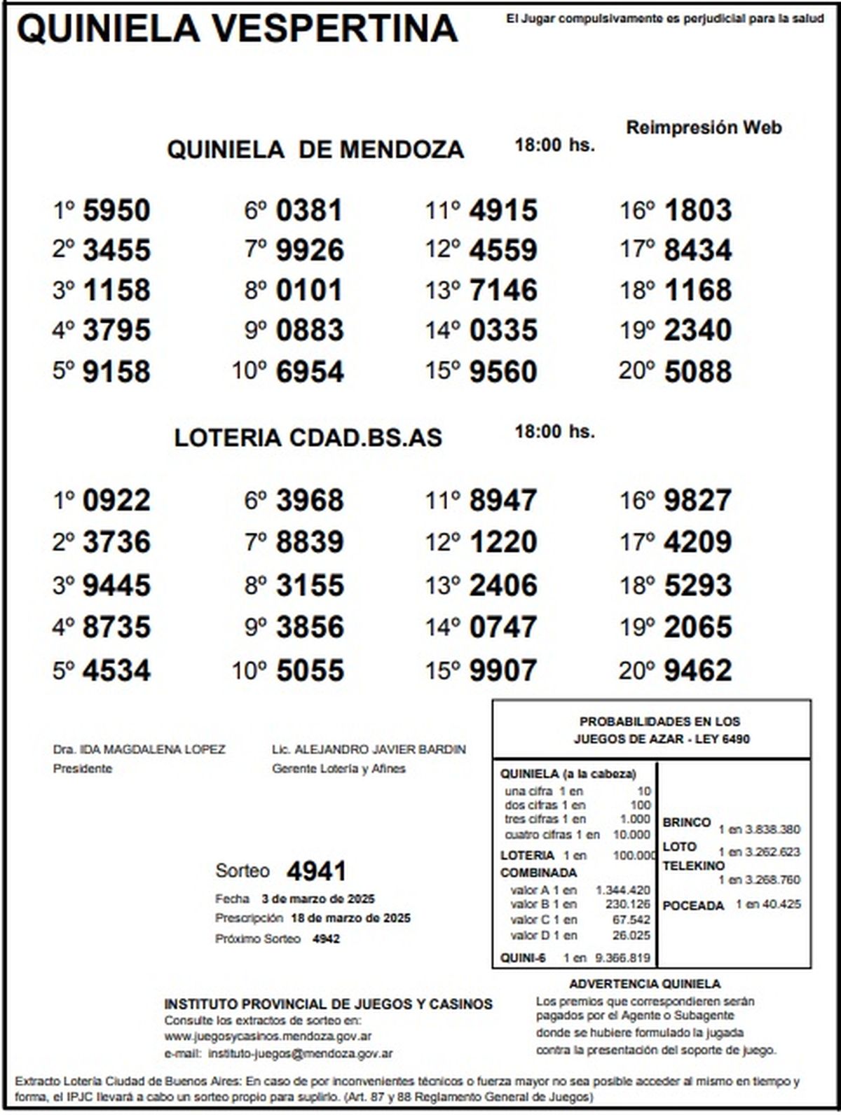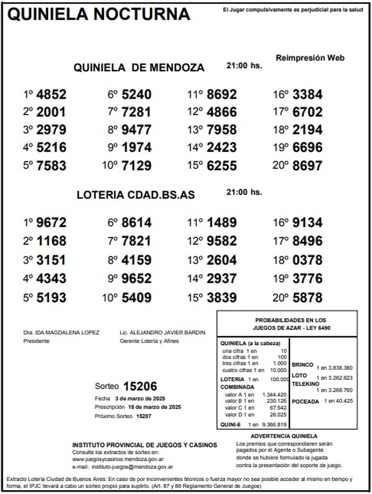 Quiniela de Mendoza: resultados de la Nocturna de hoy, 3 de marzo de 2025