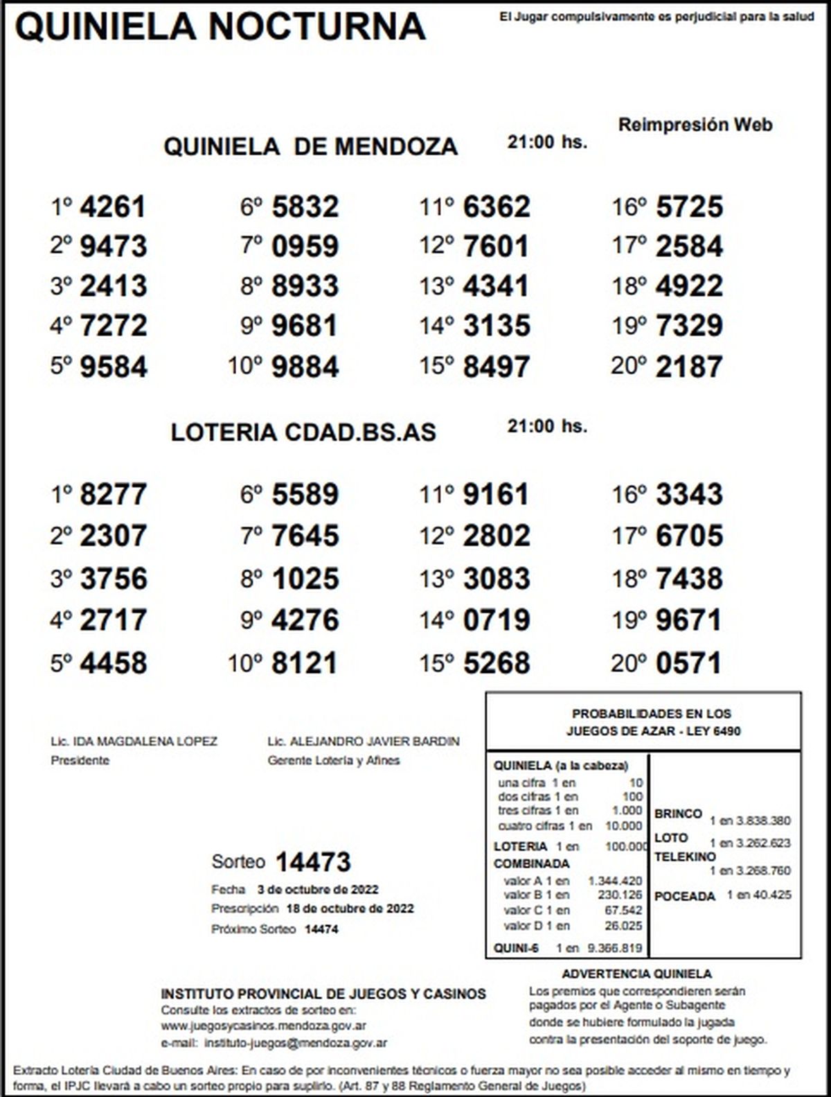 Quiniela de Mendoza: resultados de la Nocturna de hoy, 3 de octubre de 2022