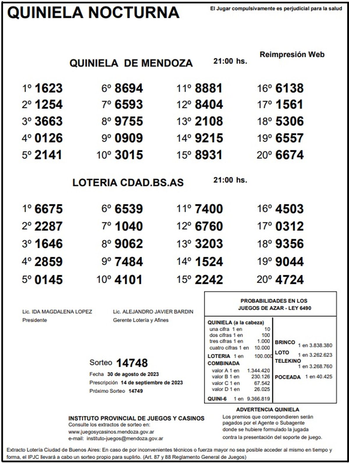 Quiniela de Mendoza: resultados de la Nocturna de hoy, 30 de agosto de 2023