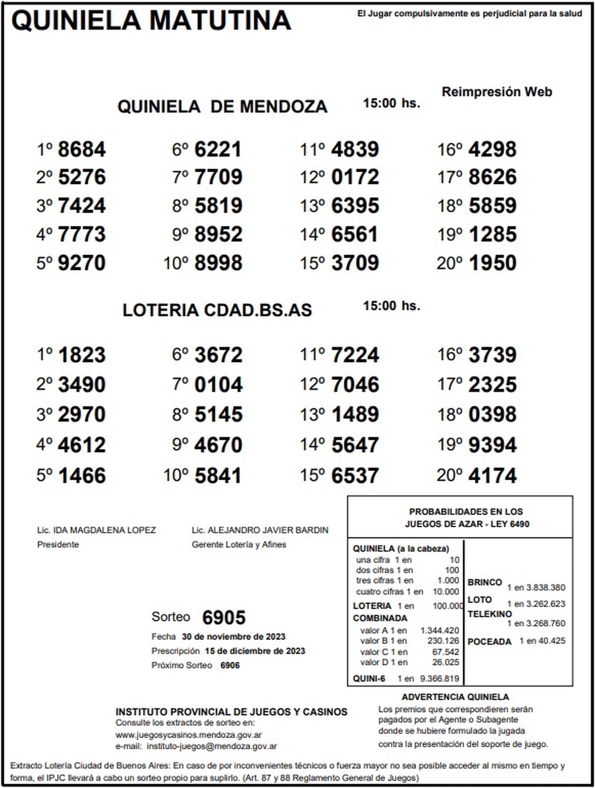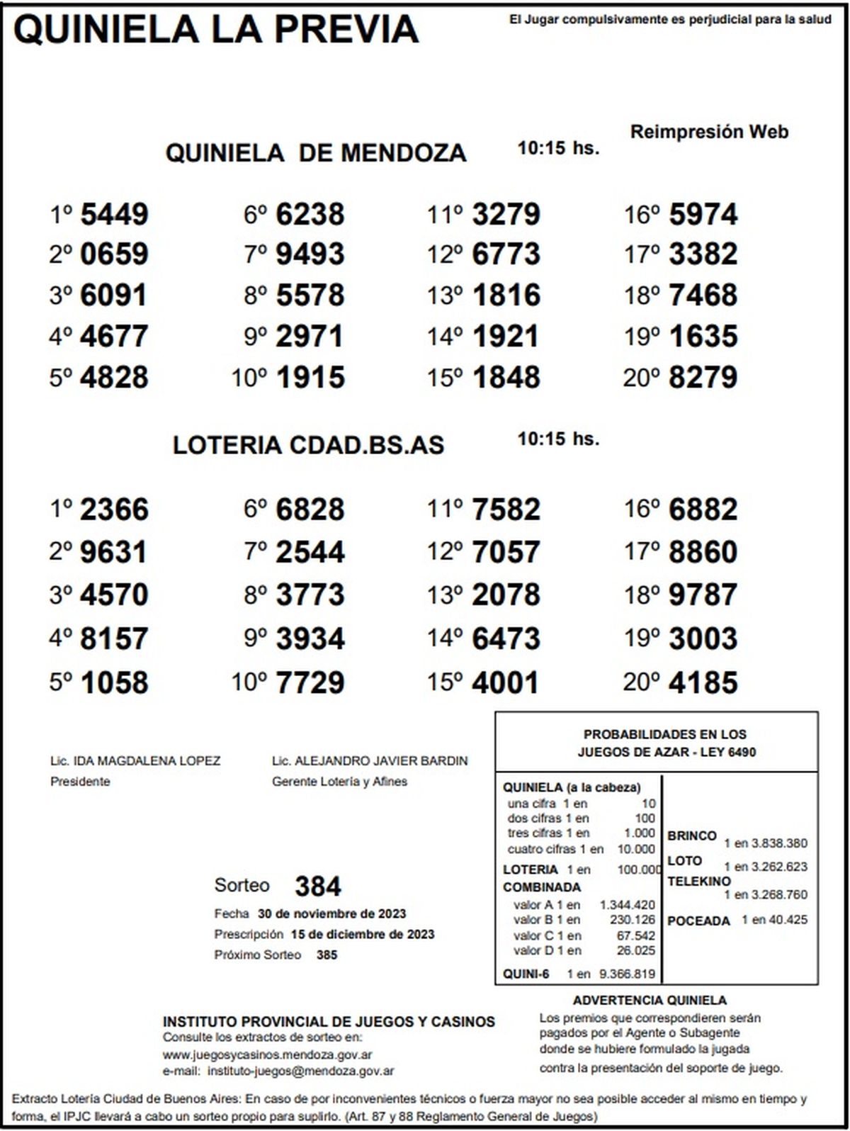 Resultados Quiniela de Mendoza: La Previa del 30 de noviembre 2023