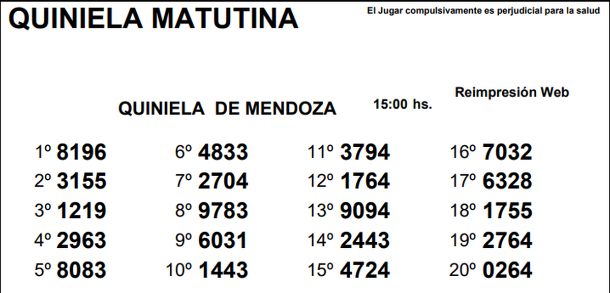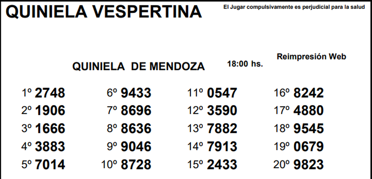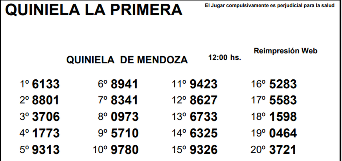 Quiniela de Mendoza: resultados de la Nocturna de hoy, 30 de setiembre