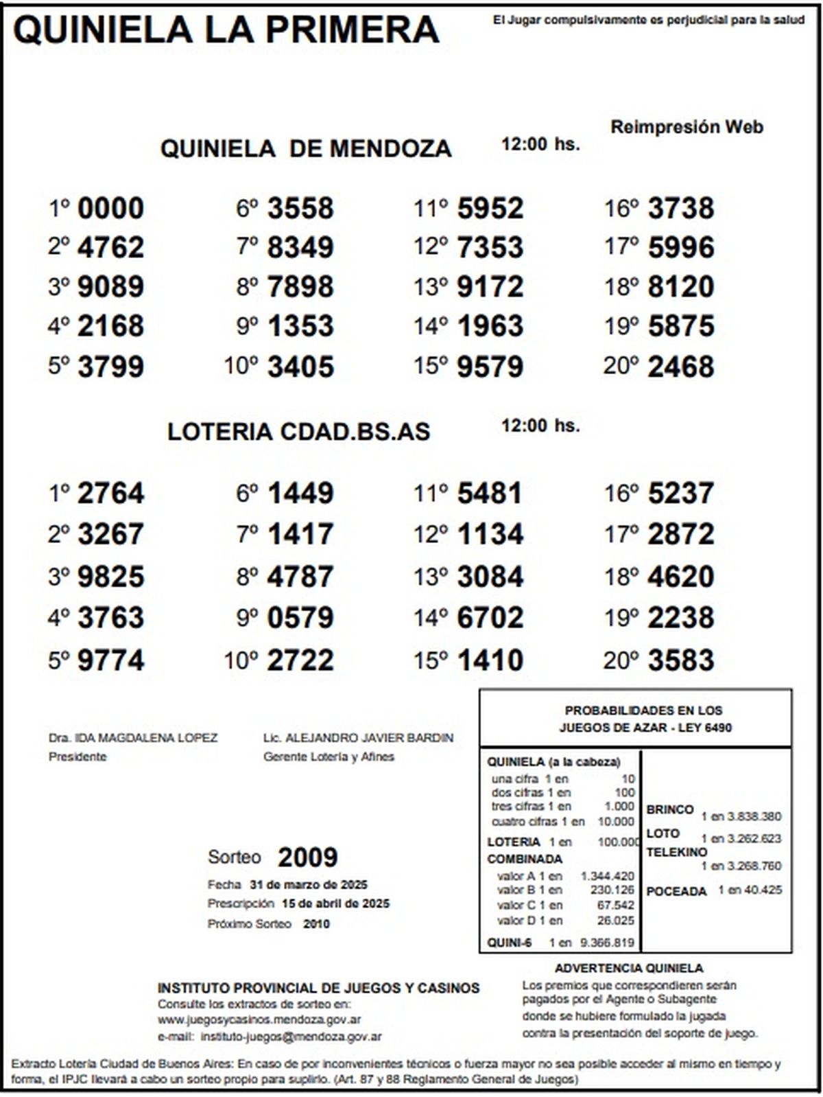 Resultados Quiniela de Mendoza: La Primera del 31 de marzo de 2025