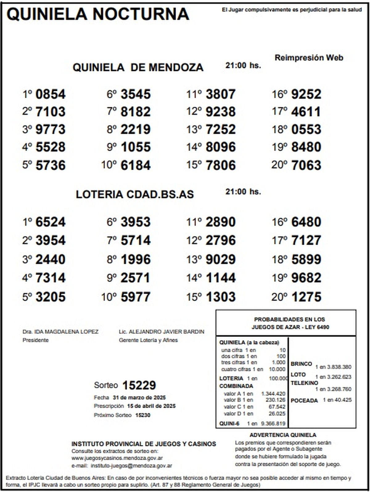Quiniela de Mendoza: resultados de la Nocturna de hoy, 31 de marzo