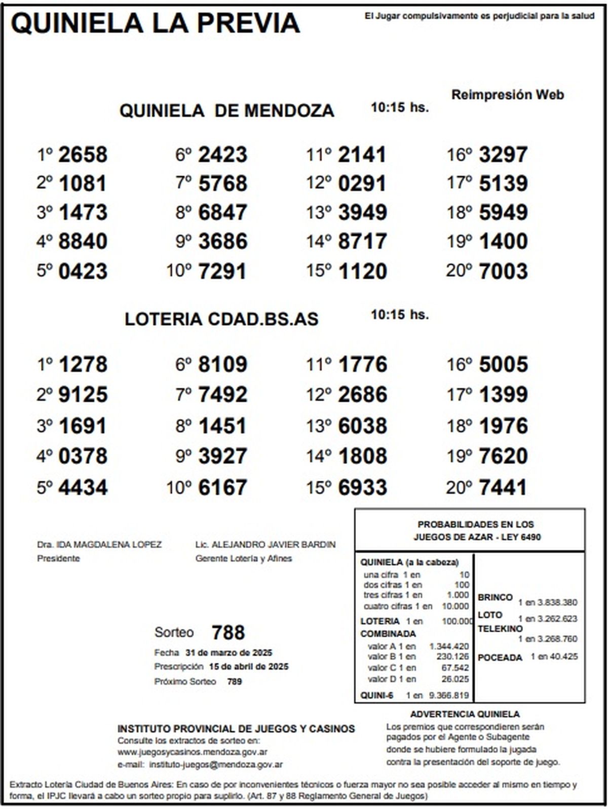 Resultados Quiniela de Mendoza: La Previa del 31 de marzo de 2025