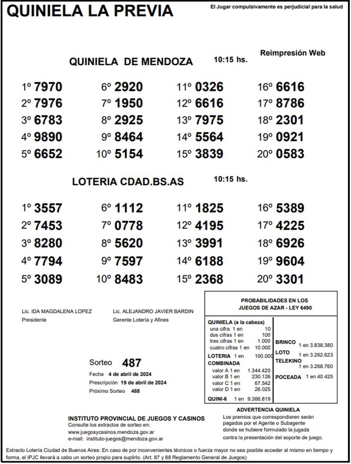 Resultados Quiniela de Mendoza: La Previa del 4 de abril 2024