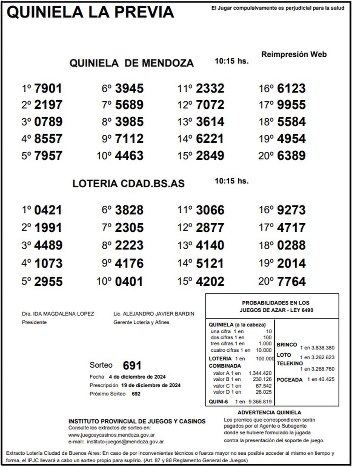 Resultados Quiniela de Mendoza: La Previa del 4 de diciembre de 2024